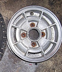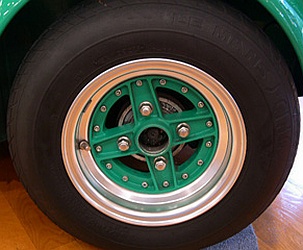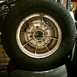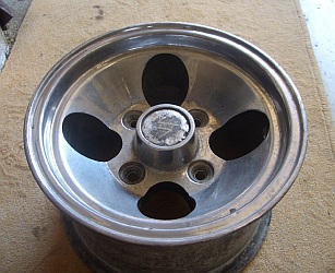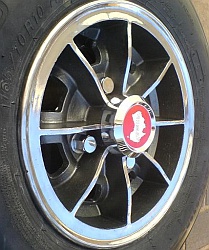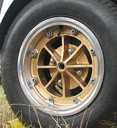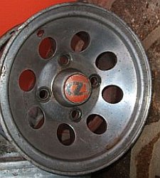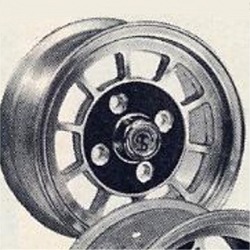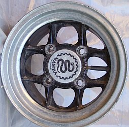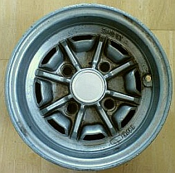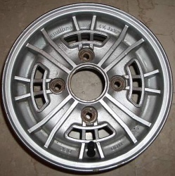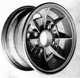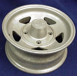 Stromberg, 5x10". | "Stromberg" branded wheel, same brand as the carburettors but 'Made in Spain'. Sand cast alloy. |