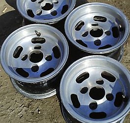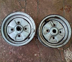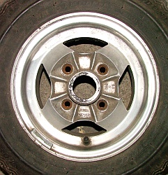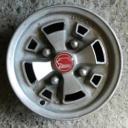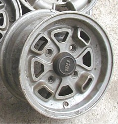Amos mags (5x10"?) | Amos made a hubcap which looked exactely like the alloy wheel but was noticably cheaper. |