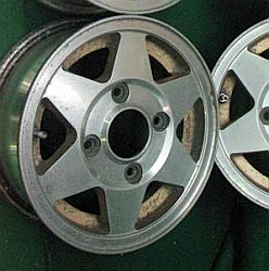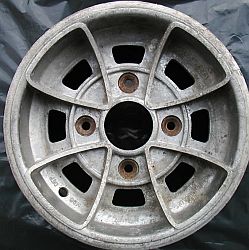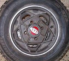 SSR 'Star Shark', 4.5x10" | Note: the wheel pictured has a 4x110 PCD to fit Honda (N600 & Z600). Likely they were made with a 4x4" PCD too. |