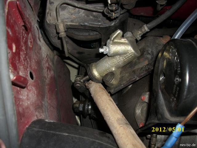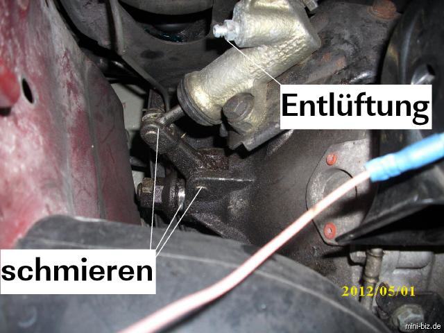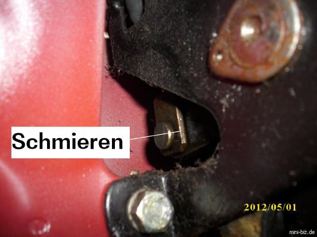 Bolzen und Aufnahmen, die eingelaufen sein können. Dies sind gleichzeitig auch die Schmierstellen. Bolzen im Fußraum am Geberzylinder. Auch hier muß regelmäßig geschmiert werden.