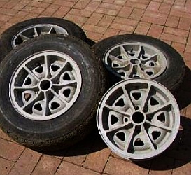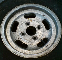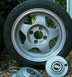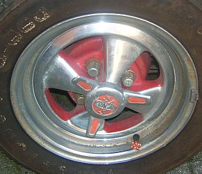 Cragar 'SS', ?x13" | Made in the USA. Production stopped about 2000. Though Cragar Wheels is still in business with classic 5 spoke wheels with similar design. |