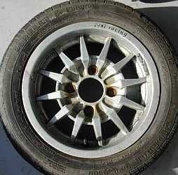 MG Metro, (5x13") | Late MG Metro, fitted 1985-87. Part number NAM5849. Note: Those wheels were used on MG Maestros and probably some other models too. Apparently there are two versions of that wheel: metric and non-metric tyre fitment. It's actually between 12 and 13" (R315x120) at around 12.5" dia. |