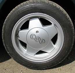 ET15 | The wheel used on the ERA Turbo, made by Compomotive. Exact lettering: 'TRACKSTAR Made in england 6.0Jx13 D1360 ET15'. Under the centre cap is 'COMPOMOTIVE' cast in. Beware: later wheels did not have the exact lettering as above! ERA's were not equipet with them! |