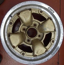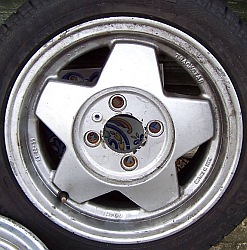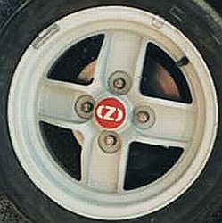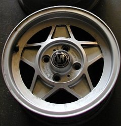 Cosmic? Lega?, 5.5x13" | Not entirely sure yet, if available with 4x4" PCD, but assumed. Made as 5x12" and 3.5&5x10" wheel as well. Note: Not sure of the actual name, maybe it came from the italian 'cerchi in lega #x##"' and was assumed as brand-name...? Update: Maybe it is a Cosmic wheel! Any confirmation? |