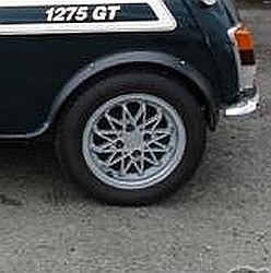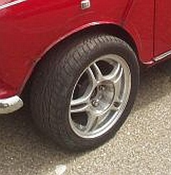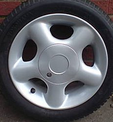 MG Metro, 5.5x13" | There are two versions of this wheel; one being a metric 'TD' wheel for Runonflat tyres (R315 160, Denovo uccesor). These wheels have a large single cap to cover both center & wheel nuts. |
