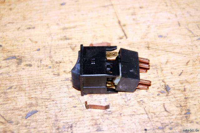Das erste Problem beim Warnblinklichtschalterist, daß nach dem Gebrauch des Warnblinkers plötzlich der Blinker nicht mehr geht. Das liegt daran, daß der warnblinklichtschalter meist sehr selten benutzt wird und mit den Jahren sich eine Oxidationsschicht auf den Kontakten bildet. Der Warnblinklichtschalter unterbricht nämlich beim Einschalten des Warnblinkers die Stromzufuhr zum Blinker. Wird der Warnblinker dann wieder ausgeschaltet, kann aufgrund der Oxidationsschicht der Kontakt nicht mehr niederohmig geschlossen werden und der Blinker funktioniert nicht mehr. Schaltet man den Schalter nun mehrmals kräftig ein und aus, bekommt man mit etwas Glück wieder Kontakt und der Blinker tut wieder. Bis eben der Warnblinker mal wieder eingeschaltet wurde. Nun muß man nicht gleich einen neuen Schalter kaufen, man kann solche ienne Schalter einfach zerlegen, reinigen und mit Kontaktfett versiegelt wieder zusammenbauen, das hält dann wieder für Jahre.