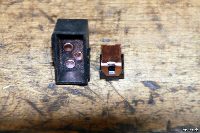 Der neue Kontaktblock. Man erkennt oben rechts eine Erhöhung.