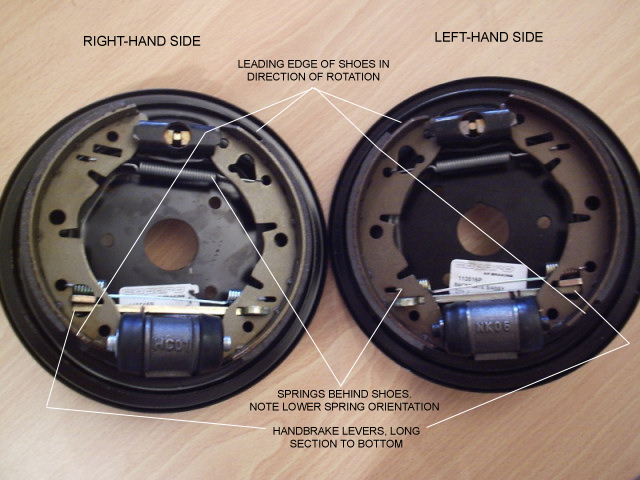 Die Bremsbacken sahen für mich beide gleich und normal aus, habe sie nach Foto wieder so eingebaut wie vorher.
