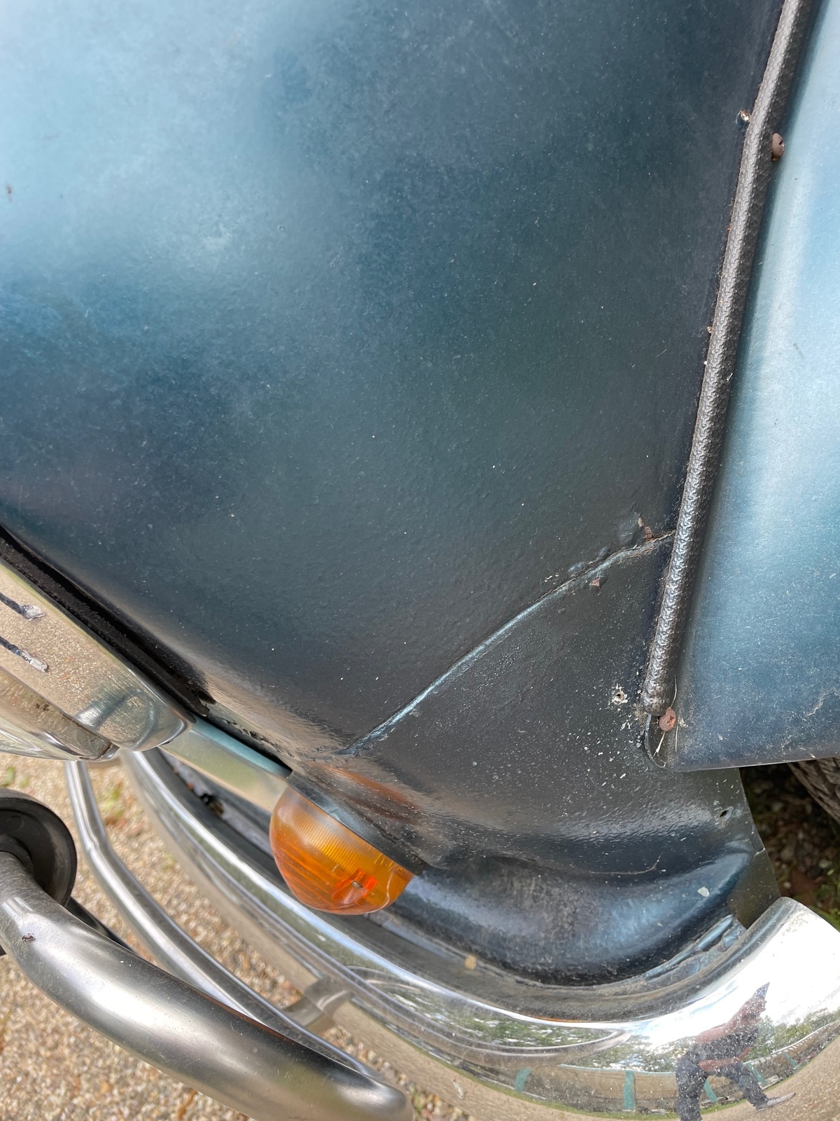 Jepp...und damit wird das Ganze nicht besser....leider..sorry.... um das wieder "nett" zu machen und Original, wirst du vermutlich weder um lackieren noch ggfs. Schweißarbeiten an den vorderen Radhäusern drumherum kommen.... :frown: .. Isso...