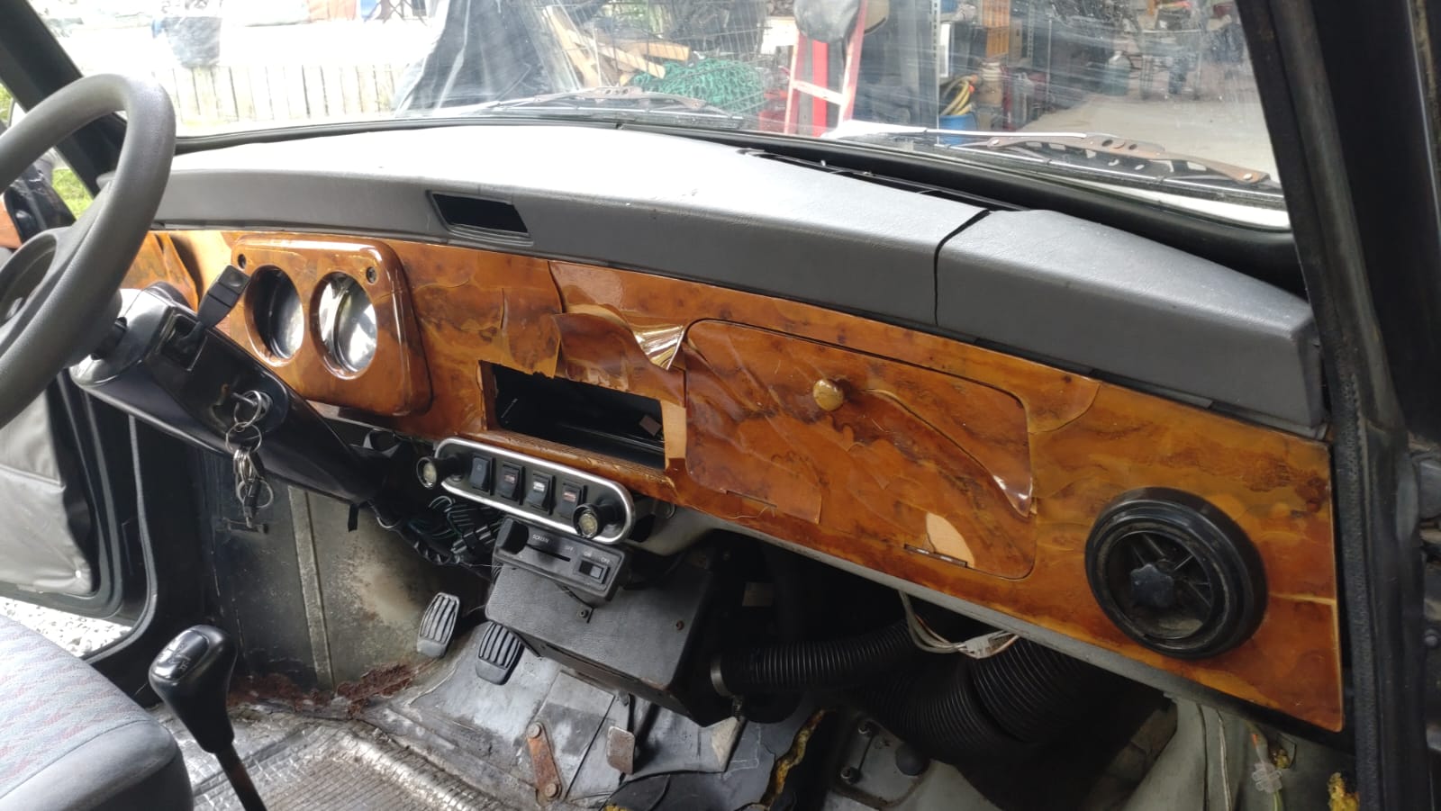 Karosseriezustand ist schön ungeschweisst und ausser im Bodenblechbereich vorne links und vorne rechts (dort sind je 2 Eurostück grosse Löcher) gut, xoweit ich das sehe. Alles recht sauber. Wagen wurde mal lackiert, keine Ahnung ob in Originalfarbe. Stell morgen noch paar Fotos rein.