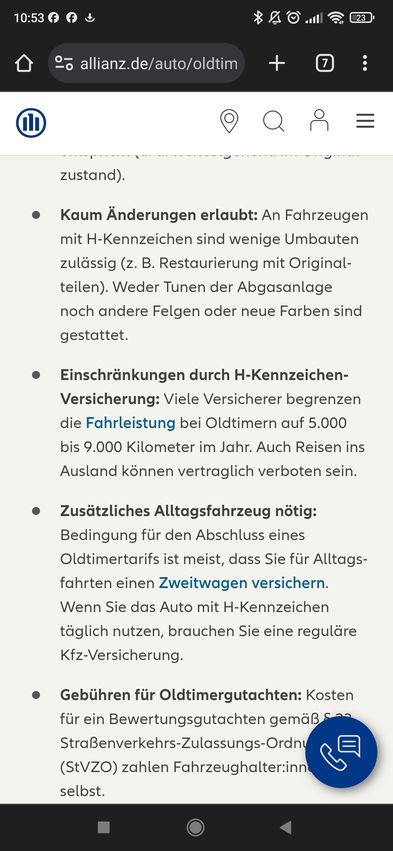 • Dann kann man halt keine Oldtimerversicherung nehmen.