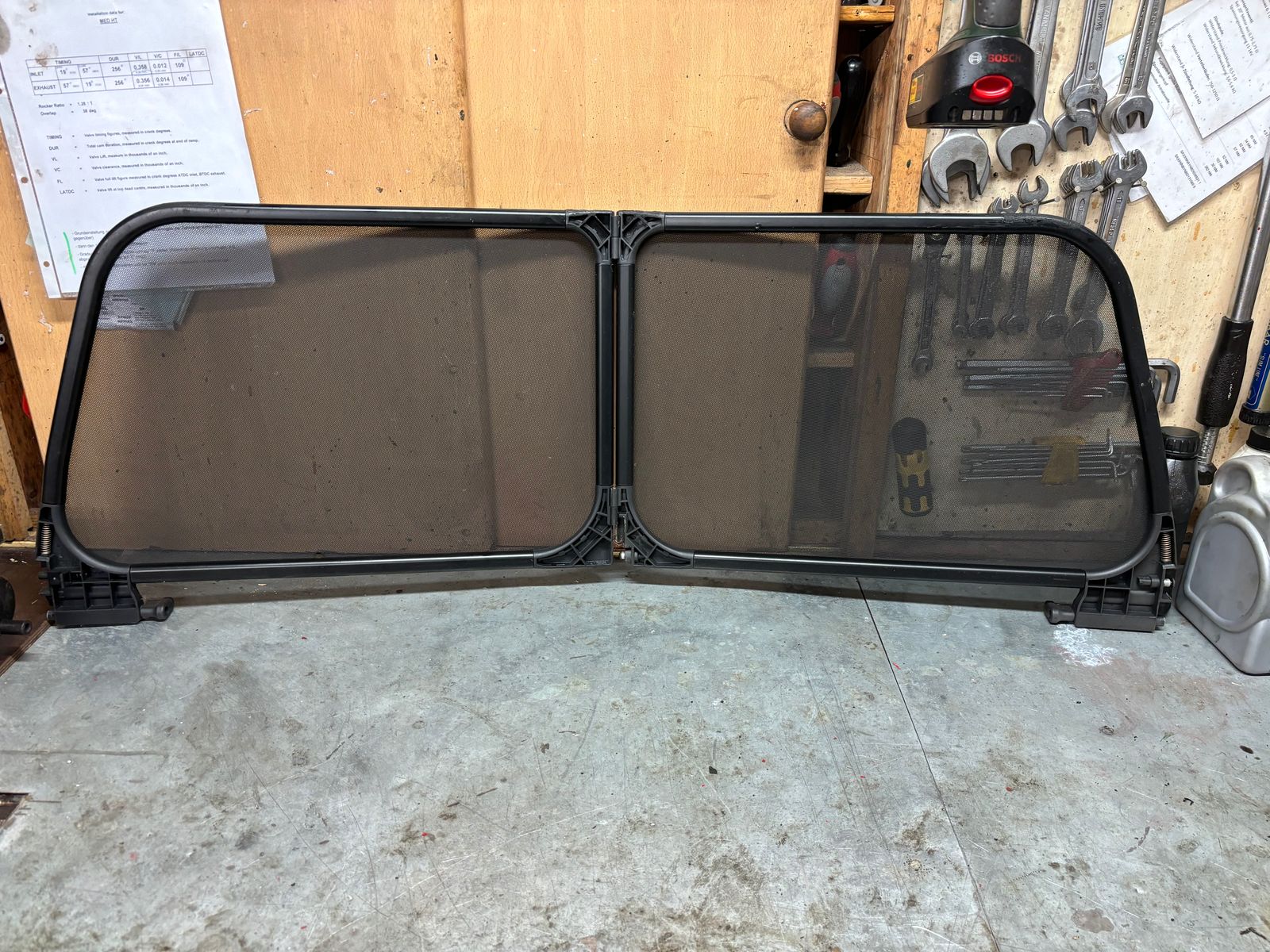 • Fällt mir ger4ade ein: Ich habe noch ein Windschott, welches damals speziell für unser Cabrio angefertigt wurde. Das wird nur mit Gurten eingehängt, benötigt also keinerlei Eingriffe am Fahrzeug. Das deckt auch die Rücksitze ab. Müsste noch irgendwo auf dem Speicher liegen.......