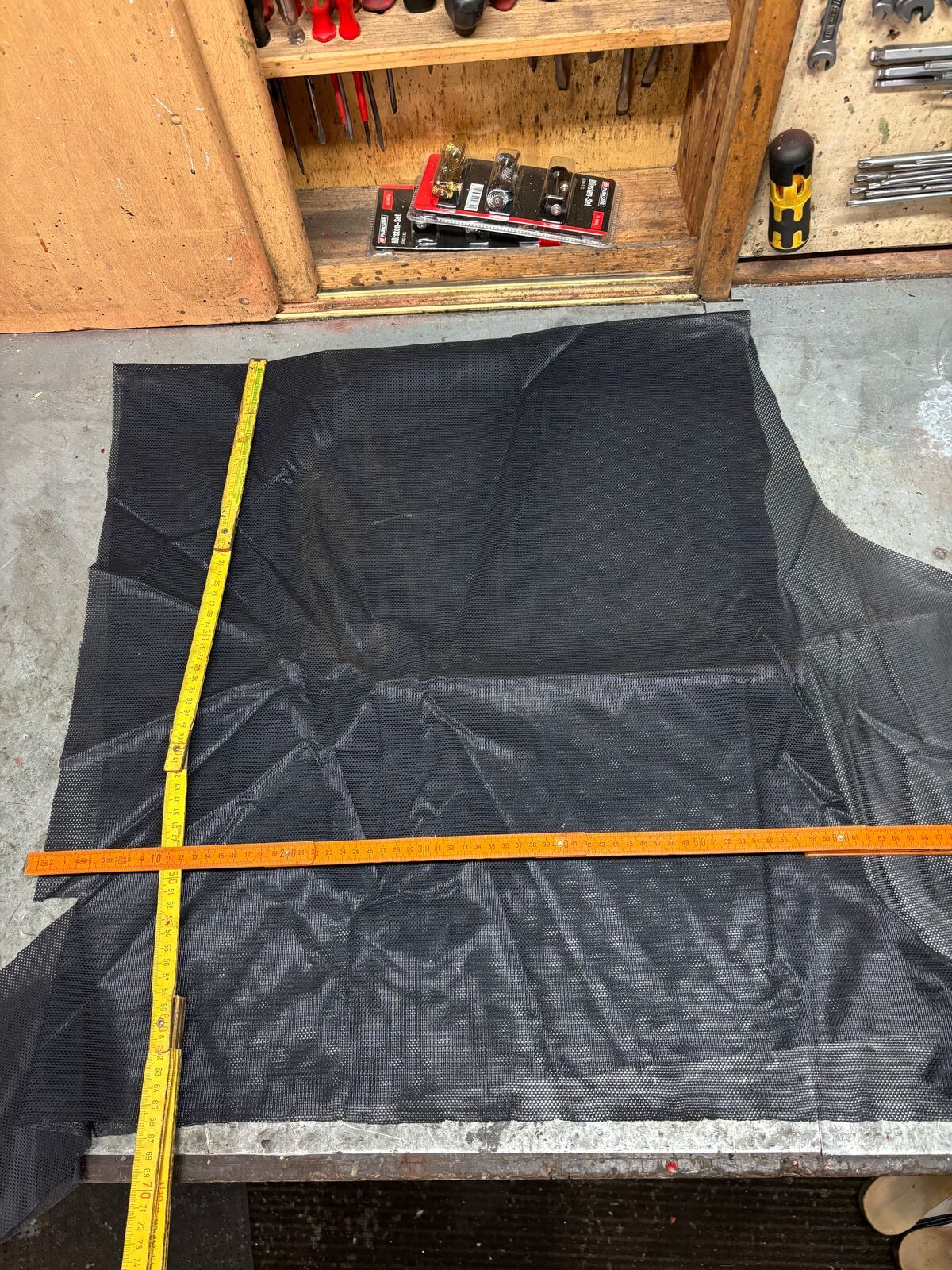 Und ein Stück Reststoff habe ich auch noch gefunden (Länge verdoppeln, liegt zusammengeklappt auf der Werkbank)
