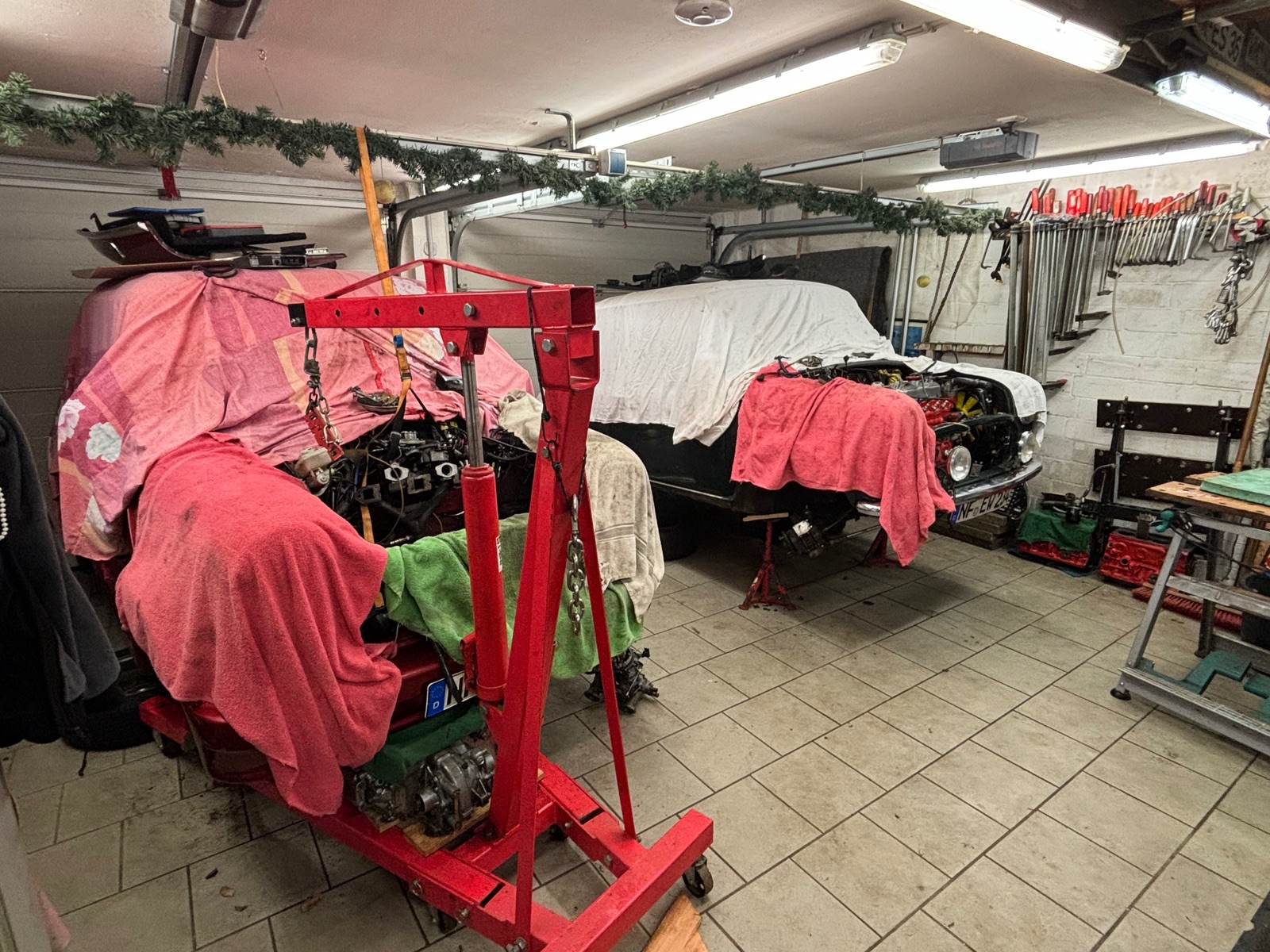 • So sieht eine Garage aus, wenn zwei Minis gerade in Arbeit sind.