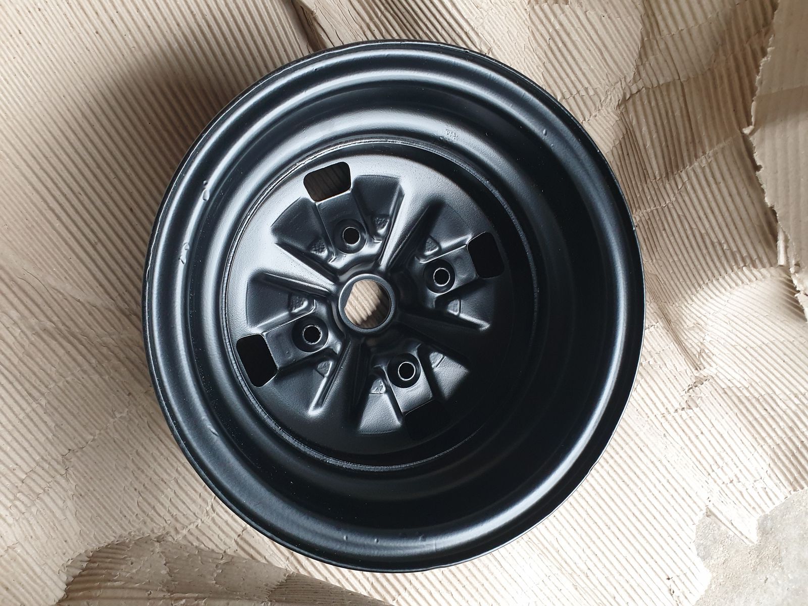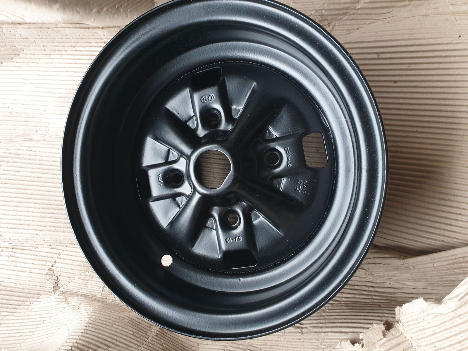Ich habe noch 5 Stahlfelgen 5 x 10, die Jahrzehnte in einem Schuppen lagen. Sie wurden nun gestrahlt und pulverbeschichtet in schwarz.