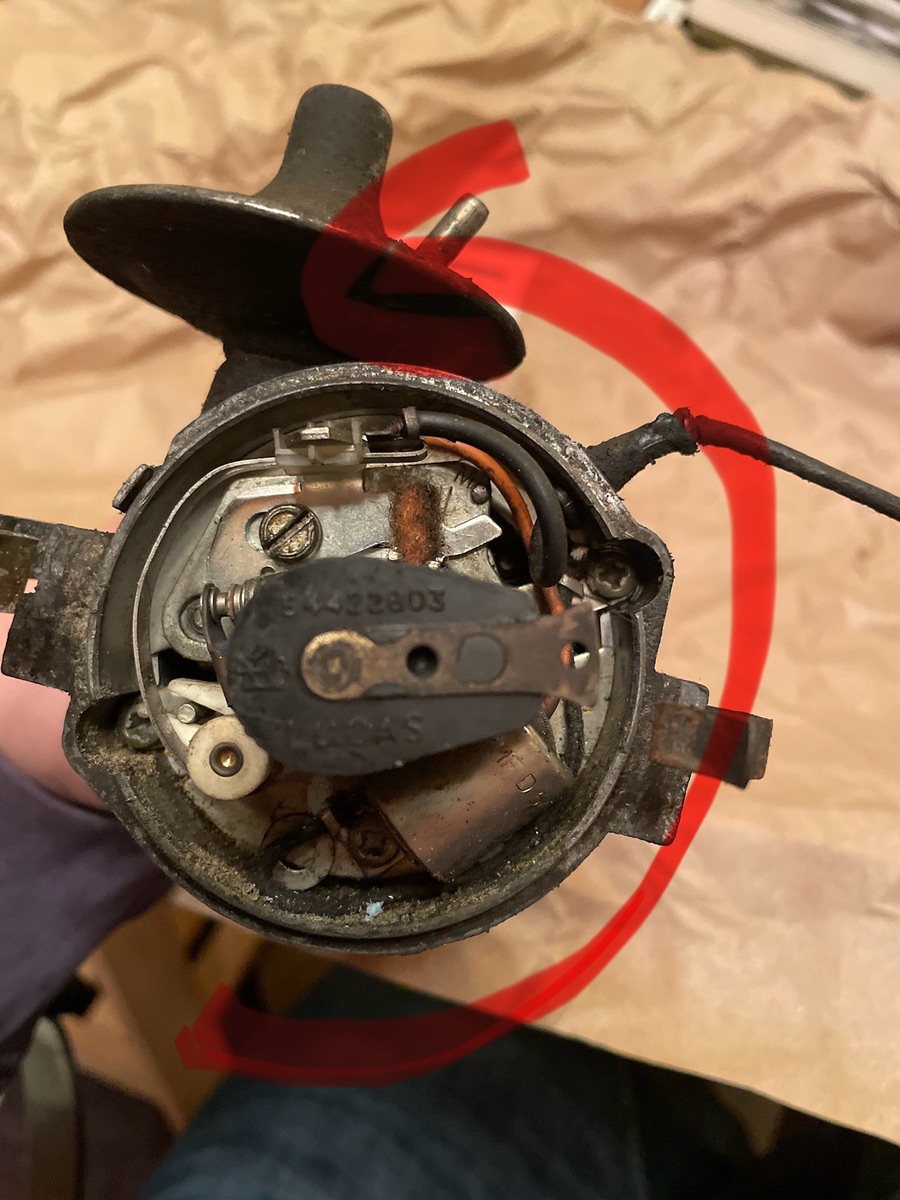 ich habe den verteiler aus dem Motor ausgebaut. Oben am Verteilerfinger habe ich danach an meinem Schreibtisch gedreht um eine Gangbarkeit festzustellen. Im Anschluss habe ich den verteiler gesäubert und die teile ausgetauscht. Ich weiß aber nicht mehr zu 100% ob der Finger ruchtig steht.