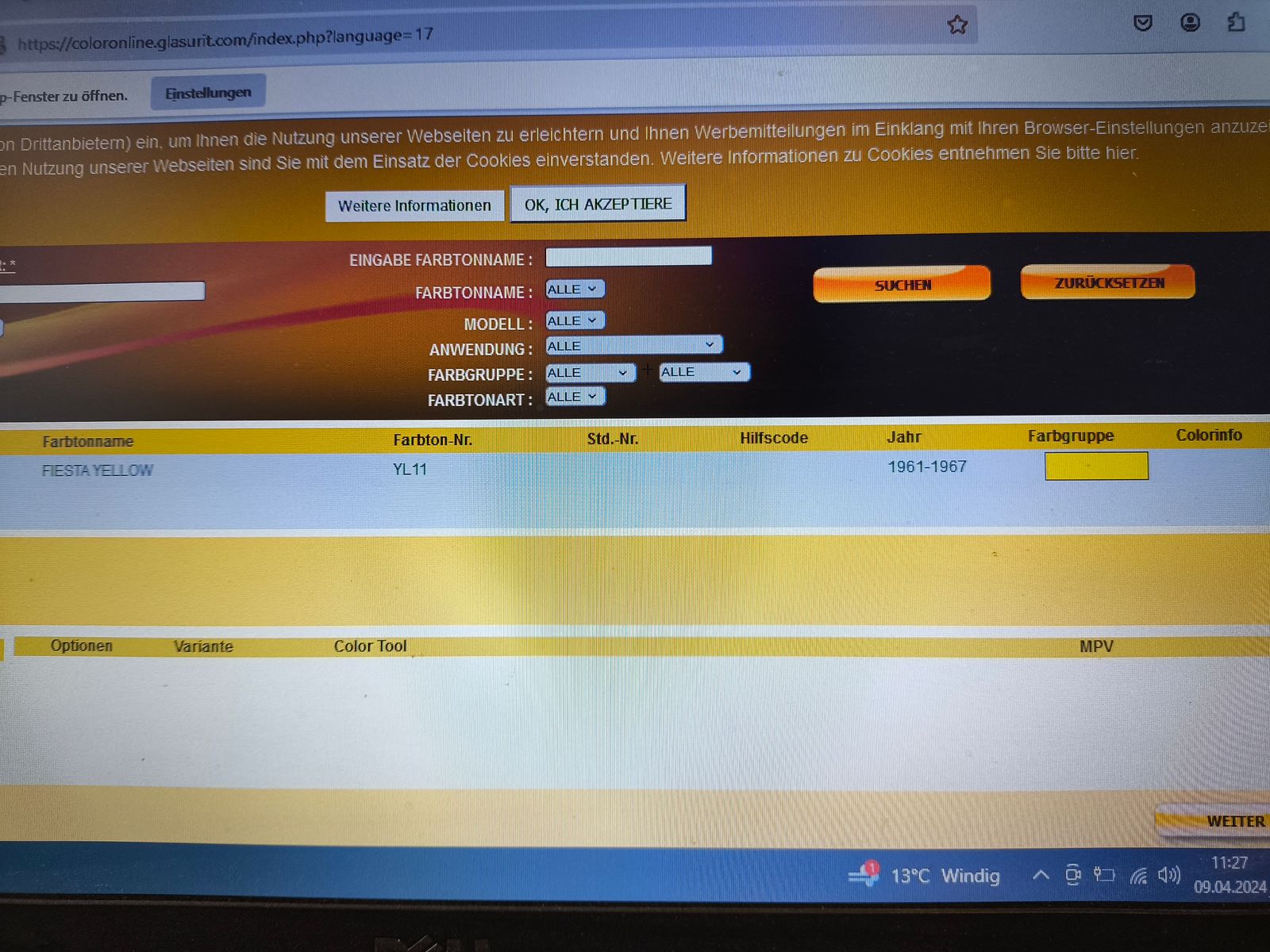 Ich suche ein Farbmusterblech oder eine Farbkarte vom originalen Fiesta Yellow.