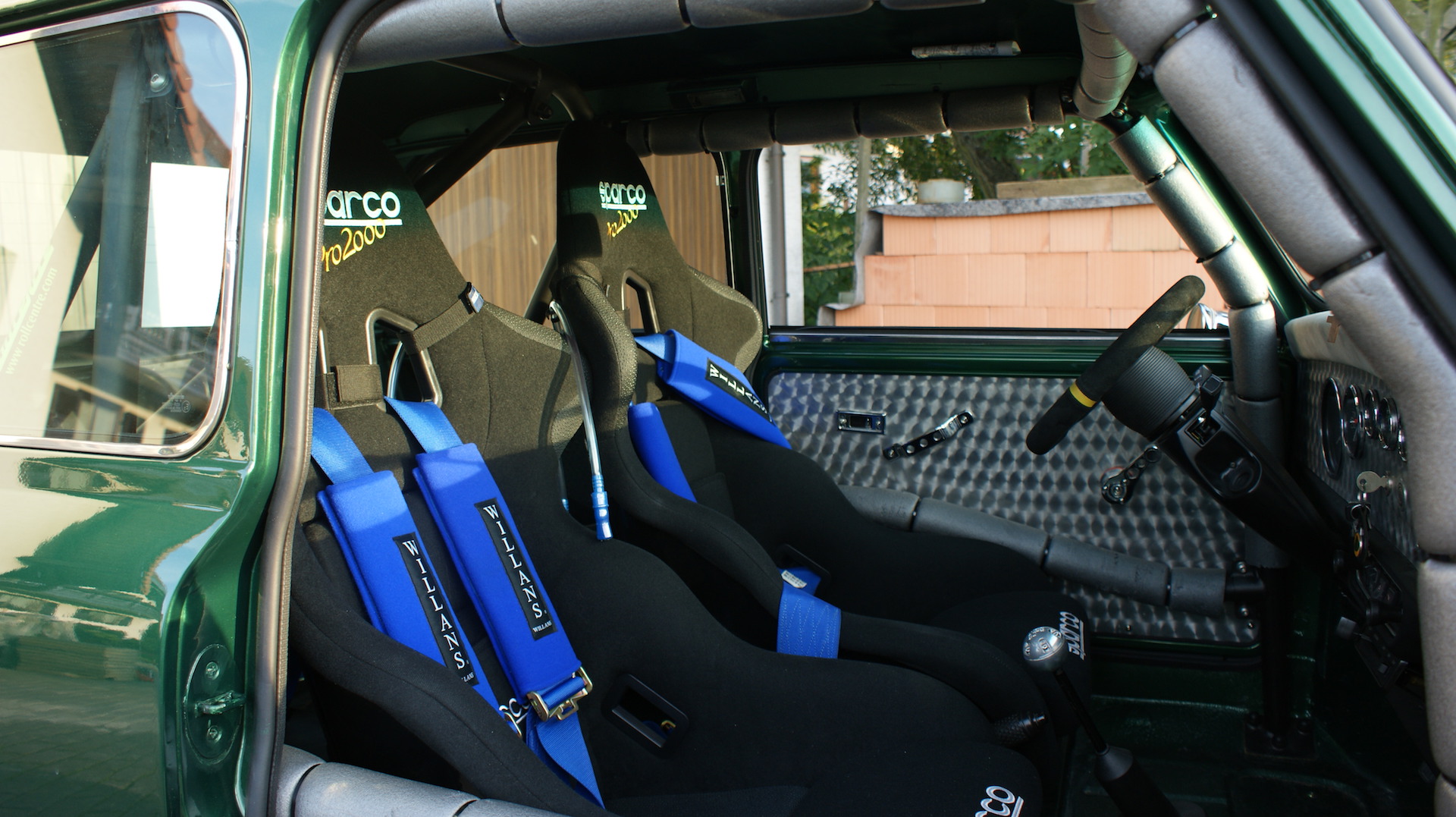 Zusatzscheinwerfer, weite Radkästen, keine Rückbank, Schalensitze, Fahrwerk (?), habe ich Zusatzscheinwerfer schon erwähnt?