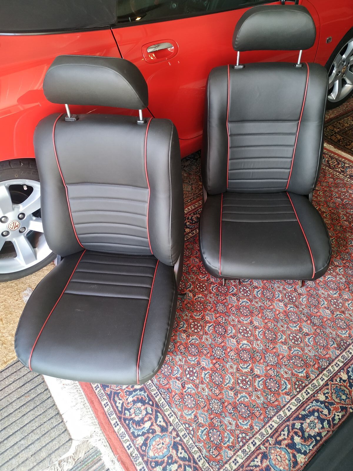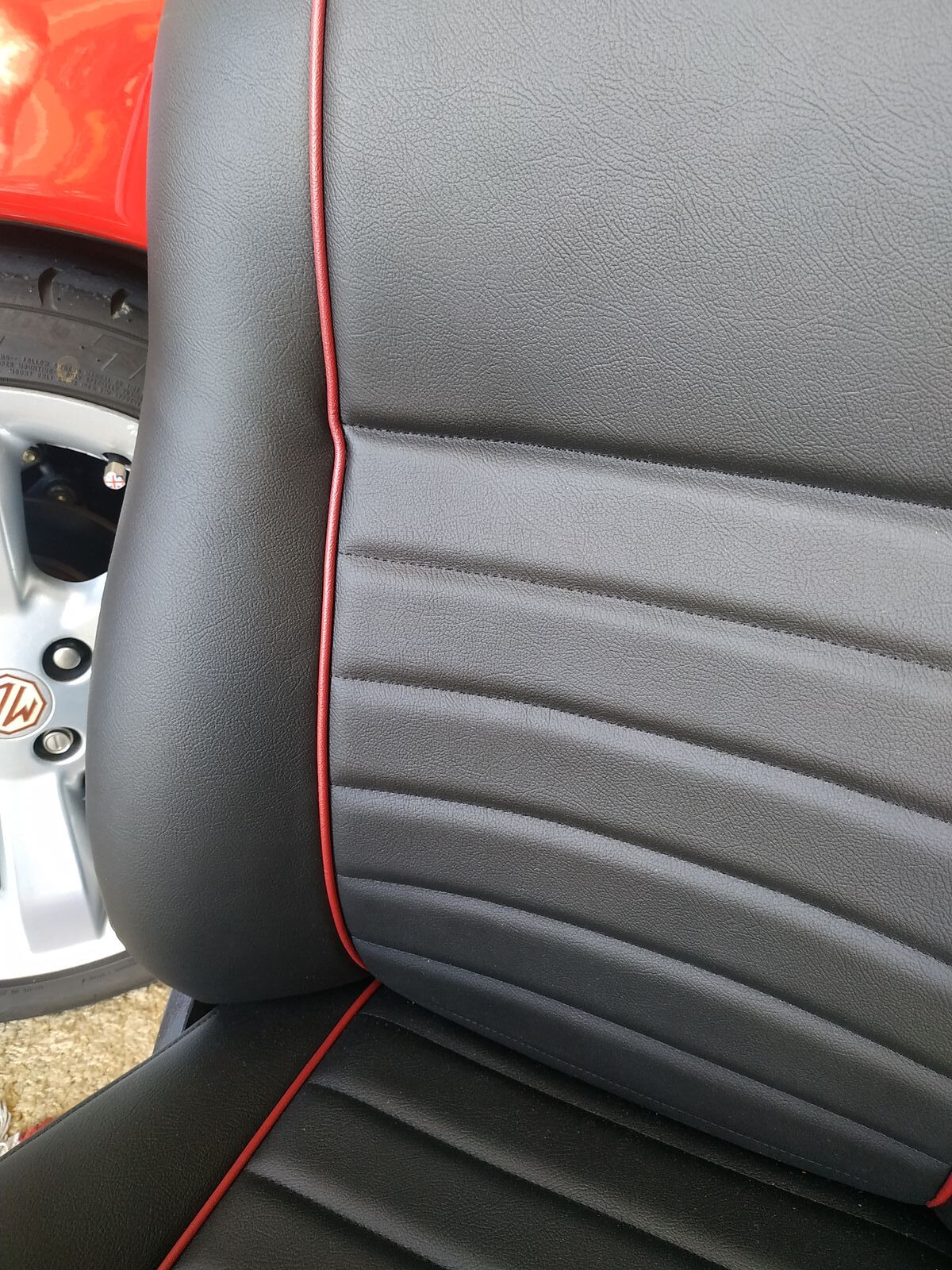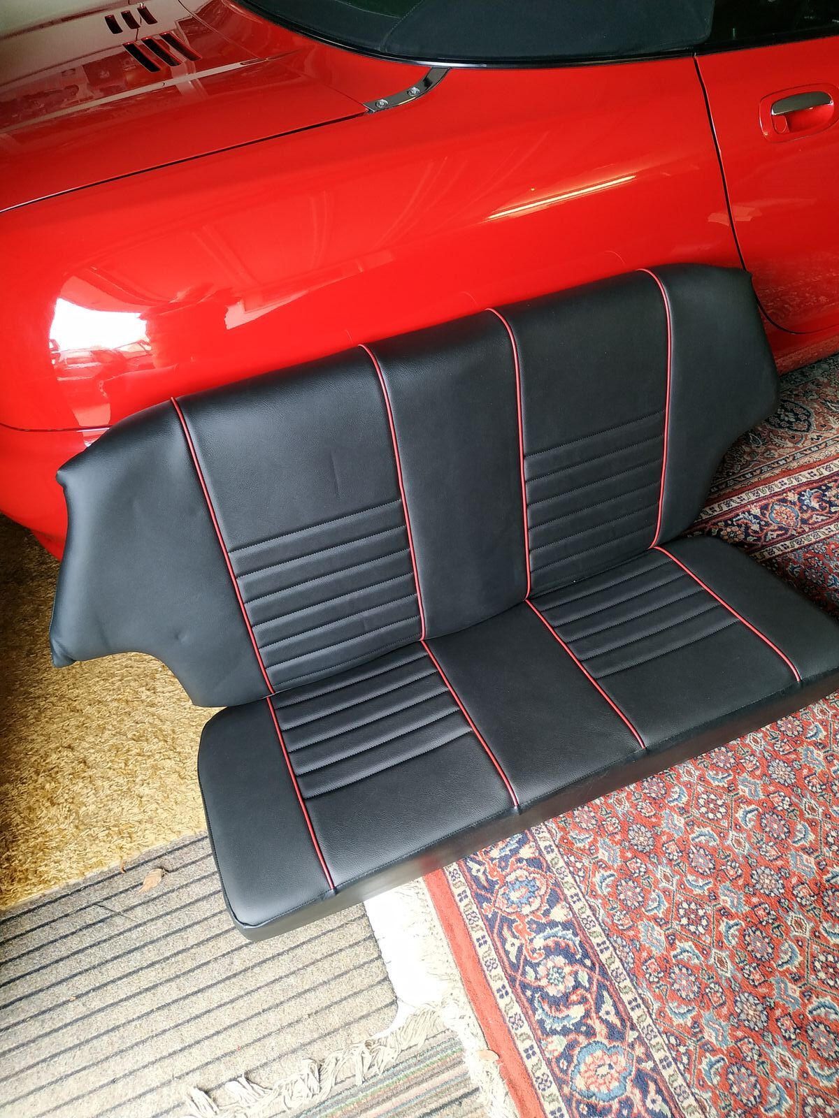 Mini SPI Sitze und Rückbank in schwarz mit rotem Keder