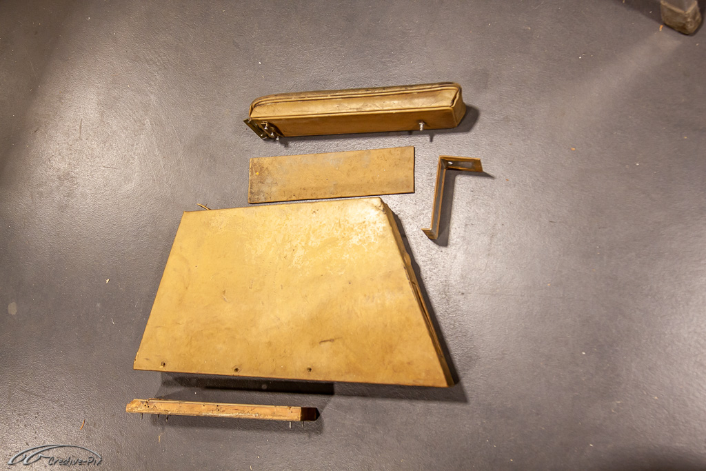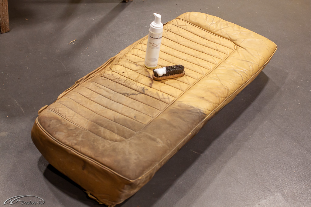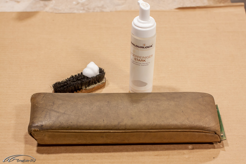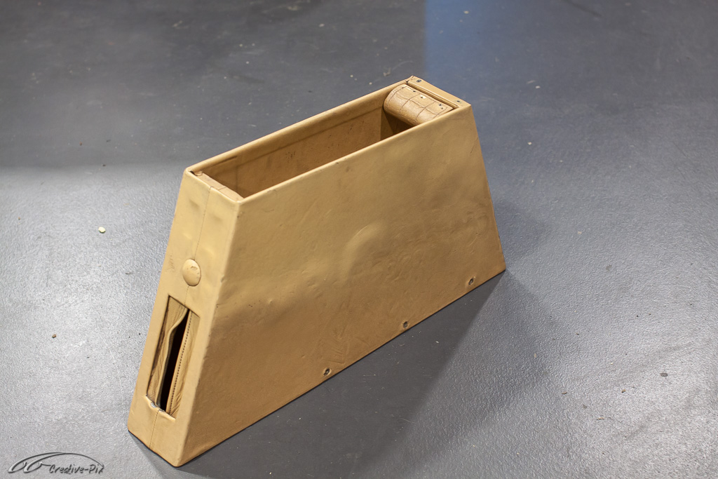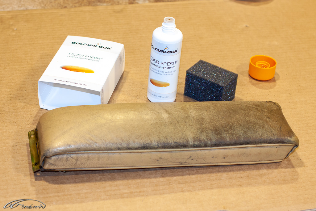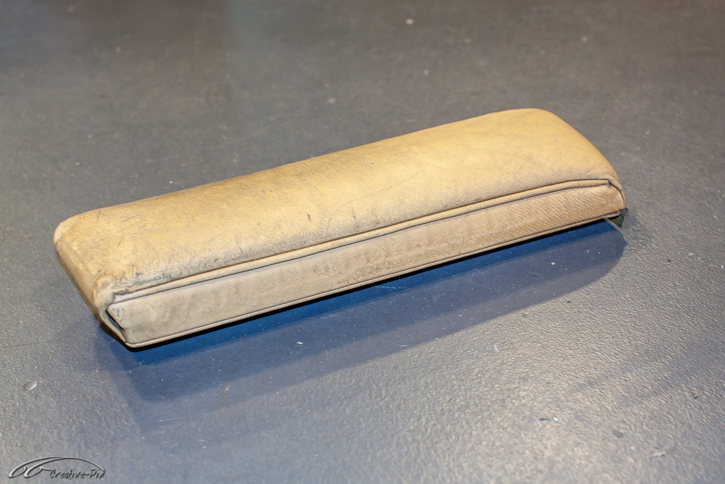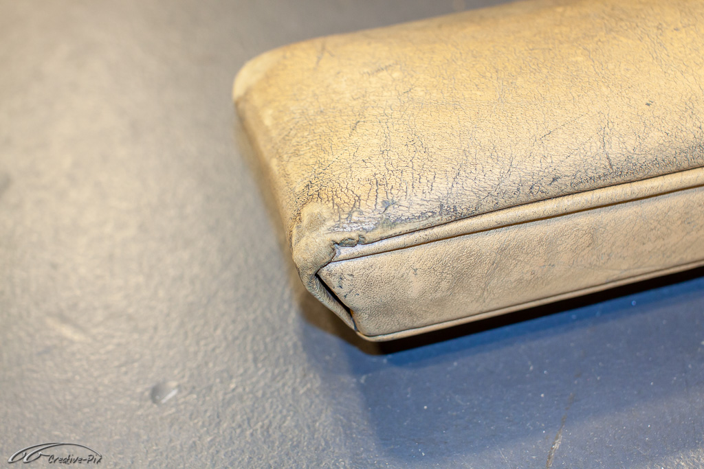 Es ist wohl nicht ganz so clever bei dem erstmaligen Einstieg in die Aufarbeitung von altem Leder gleich mit den herausforderndsten Teilen, also den vorderen Sitzen, anzufangen. Geschickter ist es die ersten Erfahrungen mit dem Material und den Produkten erst einmal an kleinen und unkomplizierten Teilen zu machen. Die wahrscheinlich unvermeidlichen Anfängerfehler sollten dann eher an den weniger sichtbaren Teilen erfolgen. Daher habe ich mich für die Mittelarmlehne entschieden. Auch wenn sie später recht gut sichtbar ist, sind Größe und Komplexität deutlich überschaubarer, um sich mit dem Material anzufreunden.