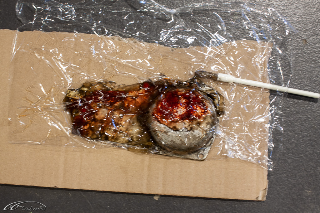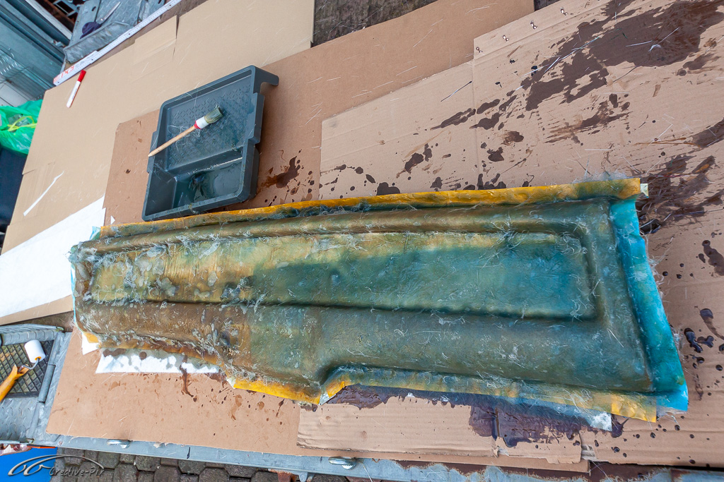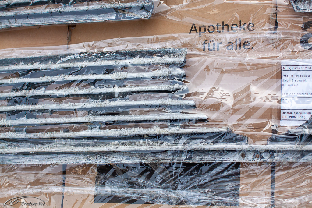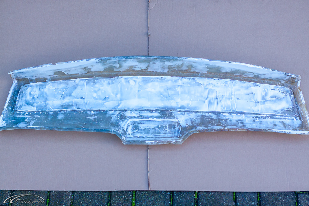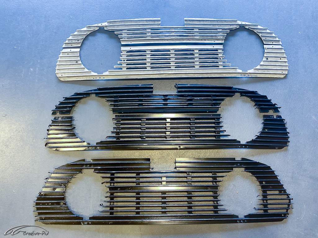 Zum Aufarbeiten der Verkleidung bin ich den traditionellen Weg gegangen. Erst gründlich gereinigt, dann in verschiedenen Steps nass geschliffen, von 400er bis 2000er Papier, um sie abschließend mit Lackreiniger wieder zum Glänzen zu bringen. Hier erst einmal der Vergleich. Die obere Hälfte noch unbehandelt, die untere Hälfte schon fertig aufgearbeitet.