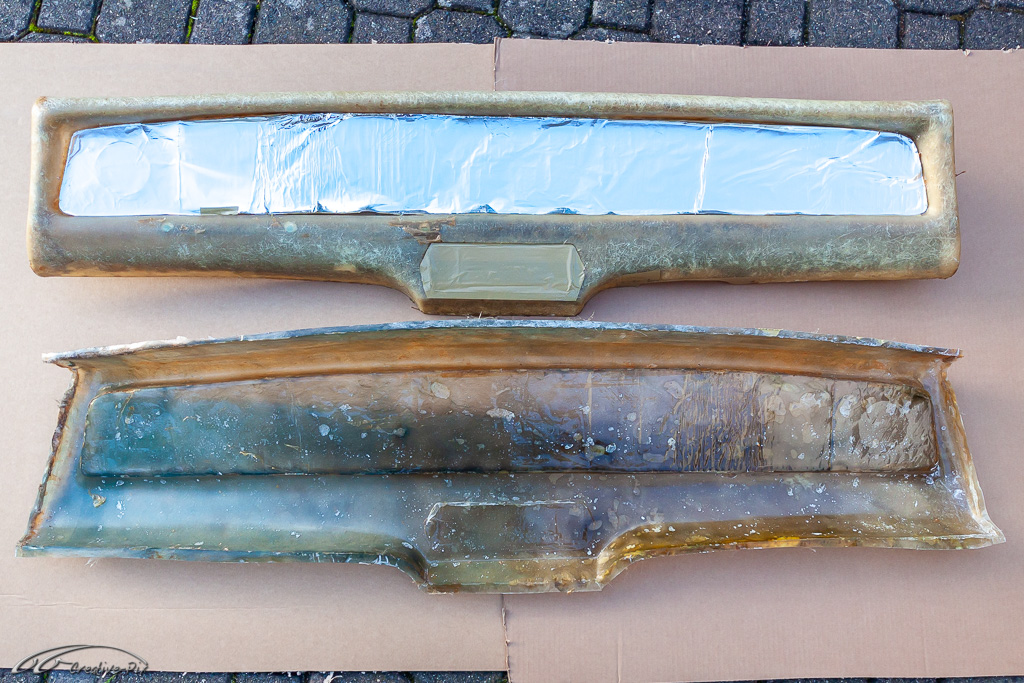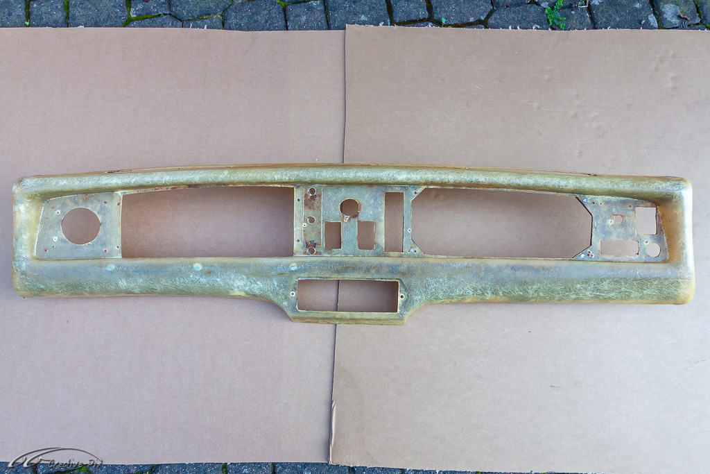 Wie sicherlich schon an der ein oder anderen Stelle erwähnt, bin ich ein Freund davon lieber alte Sachen wieder aufzuarbeiten anstatt neu zu kaufen. So ist es auch mit der Lenksäulenverkleidung. Diese hat in den letzten 50 Jahren doch etwas gelitten, zumindest was die Oberfläche angeht. Glücklicherweise war nichts gebrochen oder anderweitig beschädigt. Natürlich gibt es die MK2 Verkleidung auch neu zu kaufen, aber die Passform und die Details der alten Originalen ist doch anders bzw. besser.