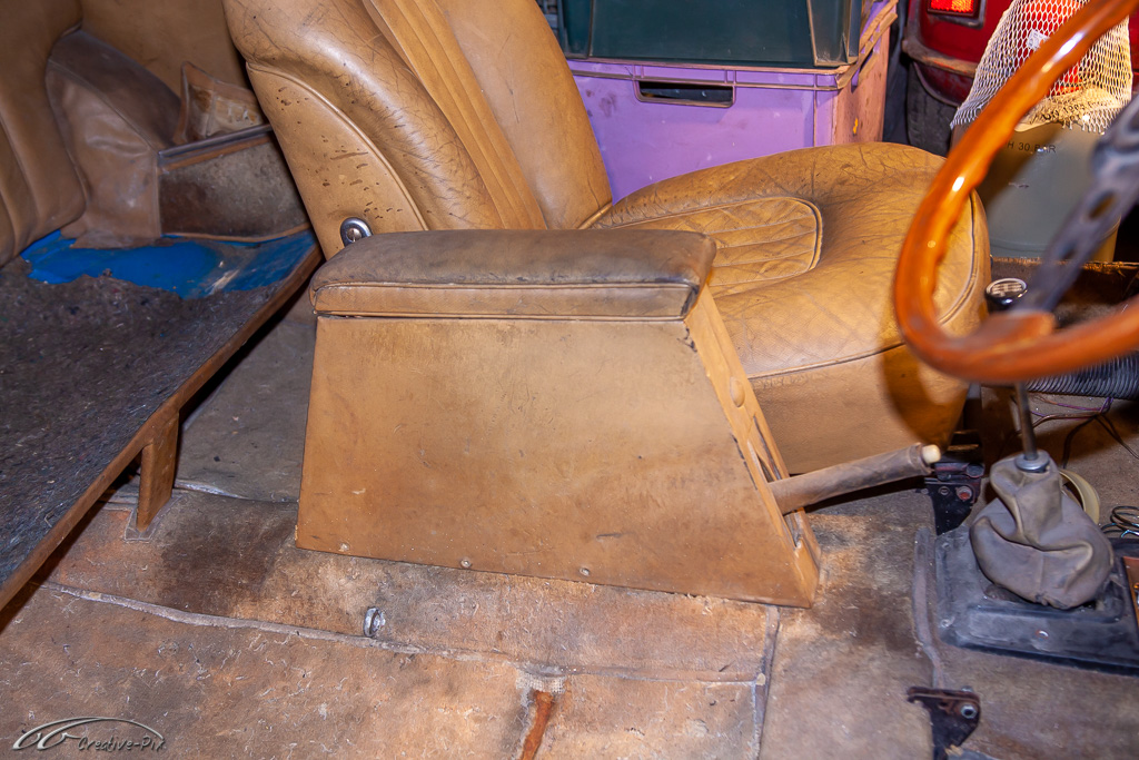 Die Unterkonstruktion (Sperrholz) ist stabil und hat keine Auflösungserscheinungen. Hier löst sich partiell das flächig verklebte Leder vom Sperrholz. Da das aber im nicht sichtbaren Bereich ist - die Sitze verdecken die Seiten der Konsole - bleibt das so. Sowohl das Fahrzeug als auch die Innenausstattung darf und soll durchaus ihre Patina zeigen, zumindest in Maßen ![]()