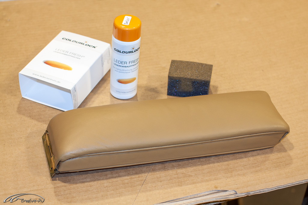 Es ist wohl nicht ganz so clever bei dem erstmaligen Einstieg in die Aufarbeitung von altem Leder gleich mit den herausforderndsten Teilen, also den vorderen Sitzen, anzufangen. Geschickter ist es die ersten Erfahrungen mit dem Material und den Produkten erst einmal an kleinen und unkomplizierten Teilen zu machen. Die wahrscheinlich unvermeidlichen Anfängerfehler sollten dann eher an den weniger sichtbaren Teilen erfolgen. Daher habe ich mich für die Mittelarmlehne entschieden. Auch wenn sie später recht gut sichtbar ist, sind Größe und Komplexität deutlich überschaubarer, um sich mit dem Material anzufreunden.