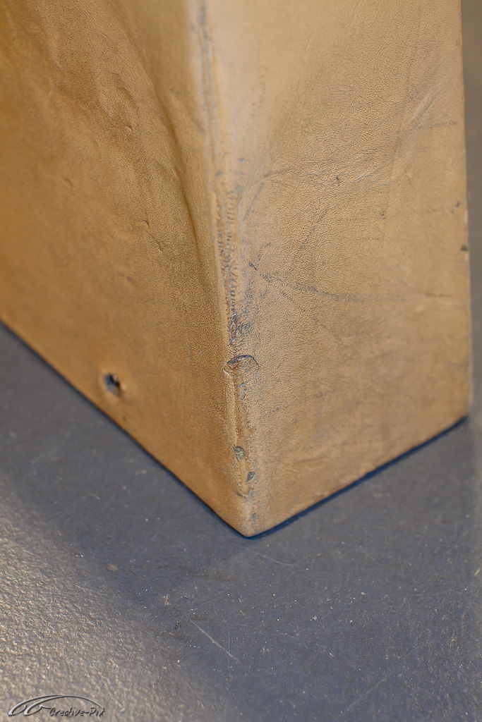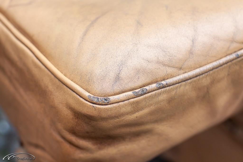 Allerdings sind nun auch die echten Schäden viel deutlicher zu erkennen. Stücke, die aus dem Leder herausgerissen sind, sowie abgestoßene und ausgefranzte Keder Kanten. Hier muss das Flüssigleder wieder zeigen was es kann.