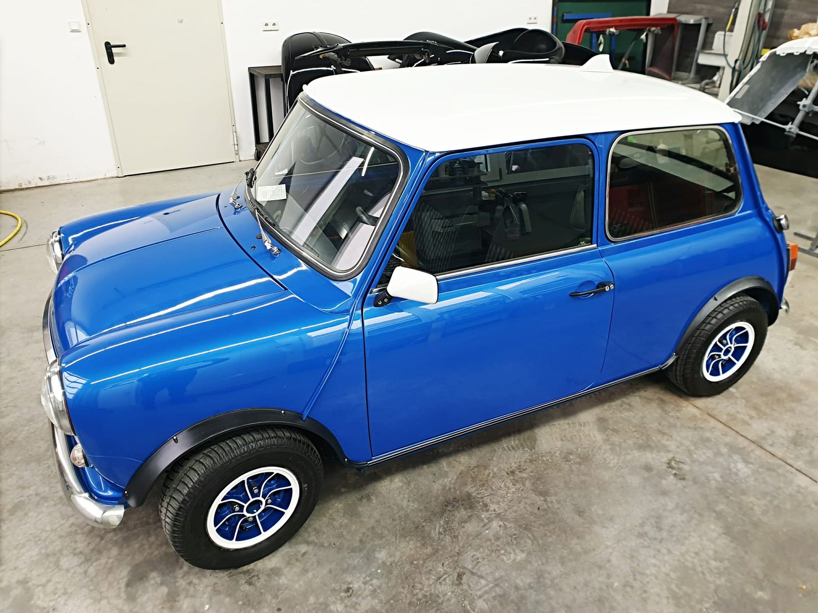 • Moin , ich soll fuer Kaya in Esslingen einen huebschen Mini aussuchen / beschaffen . Huebsch im weiblichen Sinne ist er ja ! Das Thema blau / weiss umfaenglich durchgezogen - Felgennabenkappen noch beim Lackierer ? - weisse Blinker tatsaechlich die letzte Variante mit der korrekten Fassung fuers Amber Birnchen oder evtl. nur das Glas getauscht und die Birne reinvergewaltigt , abgesehen davon gabs die geschraubte Variante `83 noch nicht ( oh,oh Abzug bei der Gesamtnote Stil )