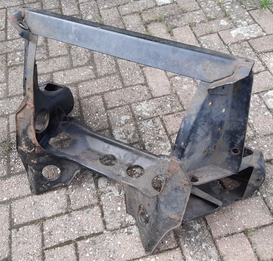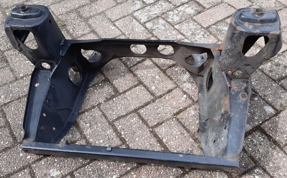 Zum anderen einen vorderen Hilfsrahmen, von denen habe ich auf absehbare Zeit genügend auf Lager, deswegen kann einer weg. Müsste man an sich nicht mal strahlen, ordentlich saubermachen und ein Schlag Farbe, schon kann's losgehen.