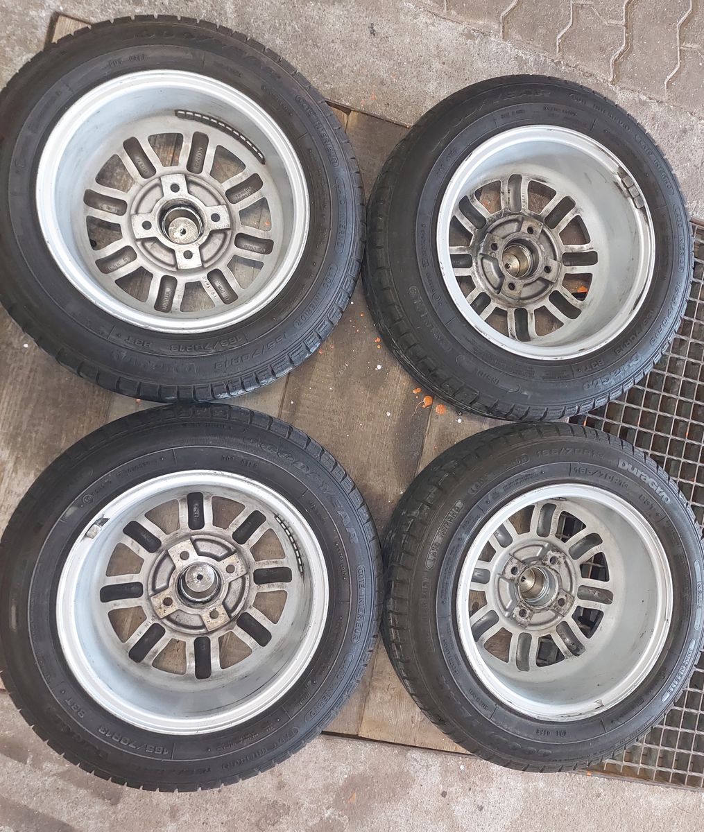 Verkaufe einen Satz 6x13 ET 16 Maxilite Felgen mit Radmuttern und Reifen an.
