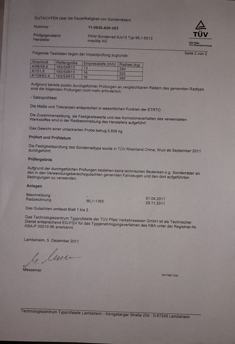 Es ist ein Gutachten von Maxilite dabei.