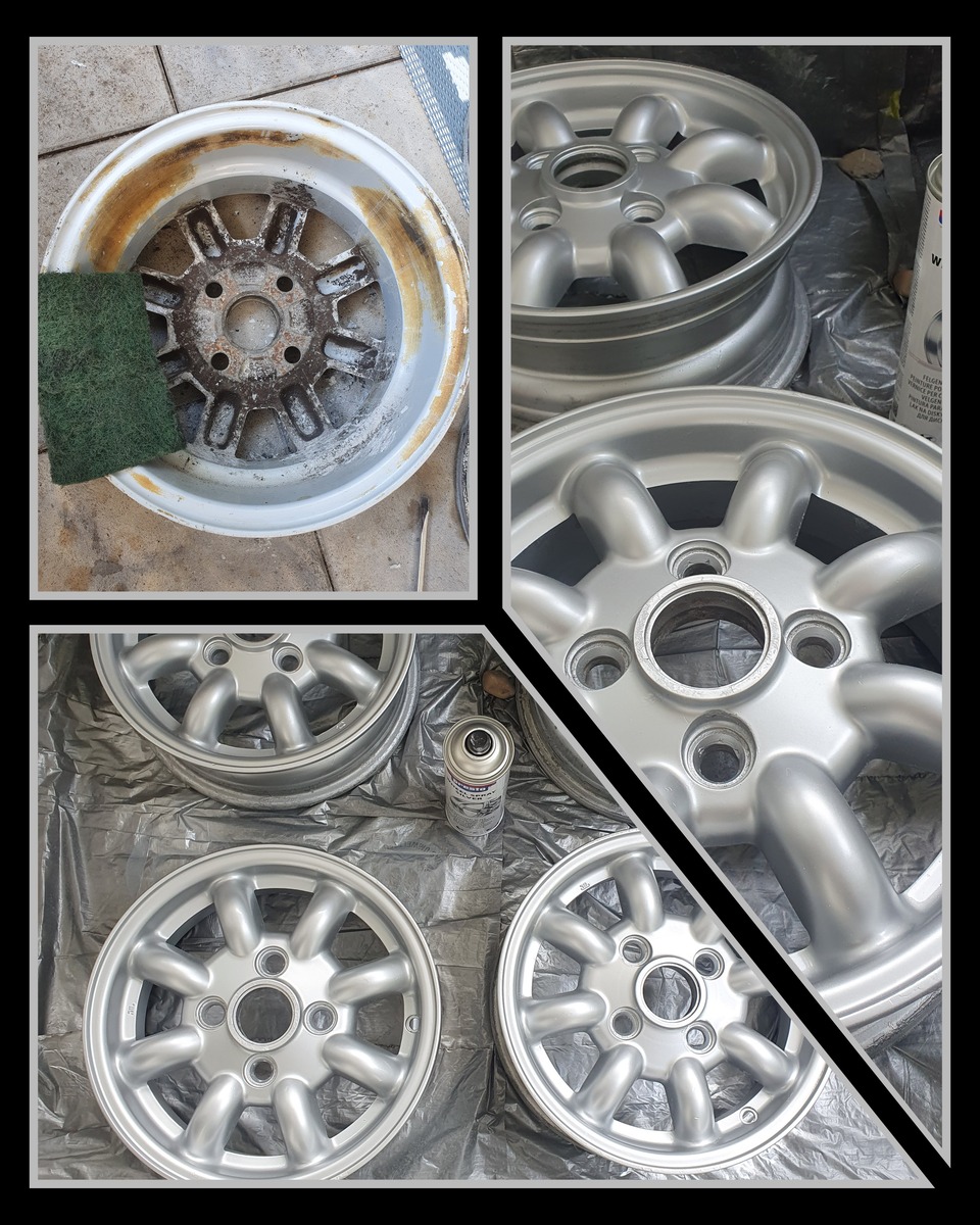 Nach der irrigen Annahme, dass 4 Felgen auch alle gleich aussehen werden nach dem Reinigen🤔(übrigens nicht in der Spülmaschine oder Waschmaschine🤣), habe ich kurze Hand zum 9€ Felgenlack gegriffen...