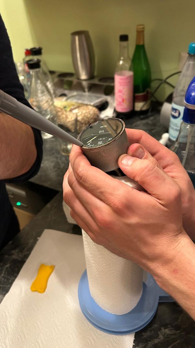 Glücklicherweise habe ich bereits vor ein paar Monaten ein altes Tacho-Ei samt Smiths-Öldruck- und Temperaturanzeige für 30 Euro auf eBay erstanden und zur Seite gelegt. Den Tacho selbst habe ich bereits im November zerlegt und gereinigt.