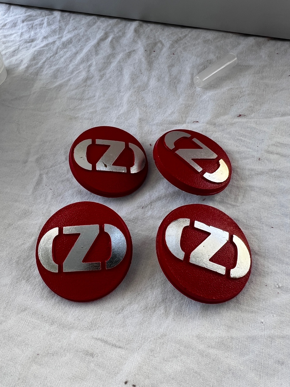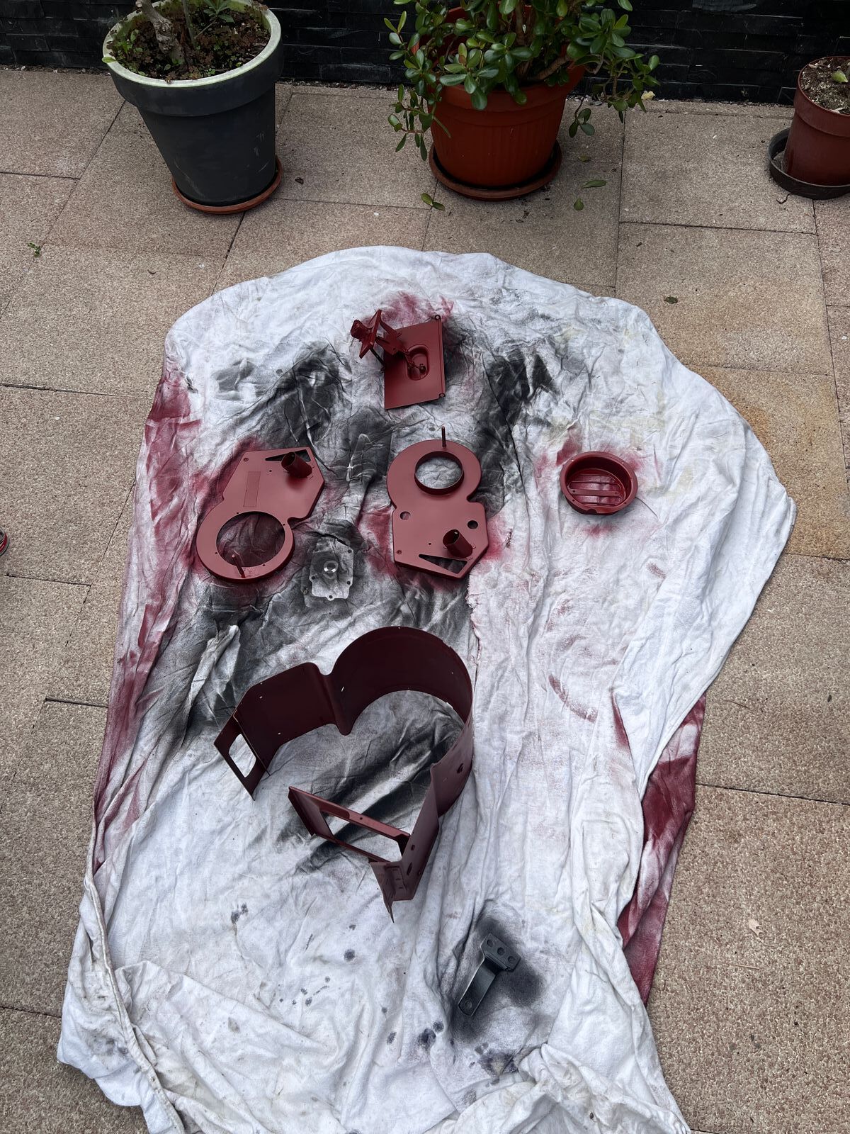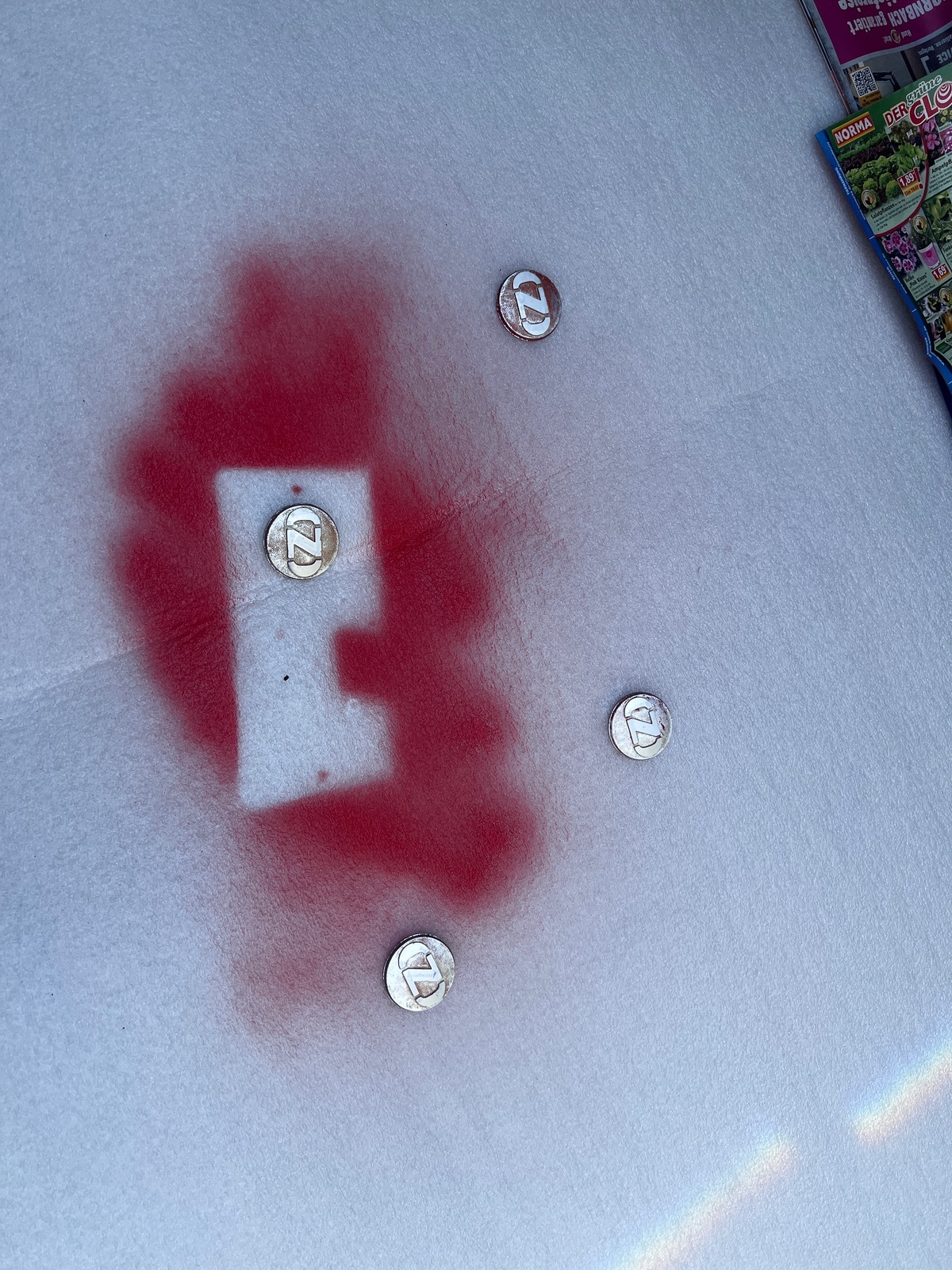 In der Zwischenzeit habe ich die Nabendeckel gereinigt und abgeklebt. Heute gab’s dann 3-4 Durchgänge mit leichtem Sprühnebel aus der karminroten Lackdose, um die Struktur bestmöglich zu erhalten.