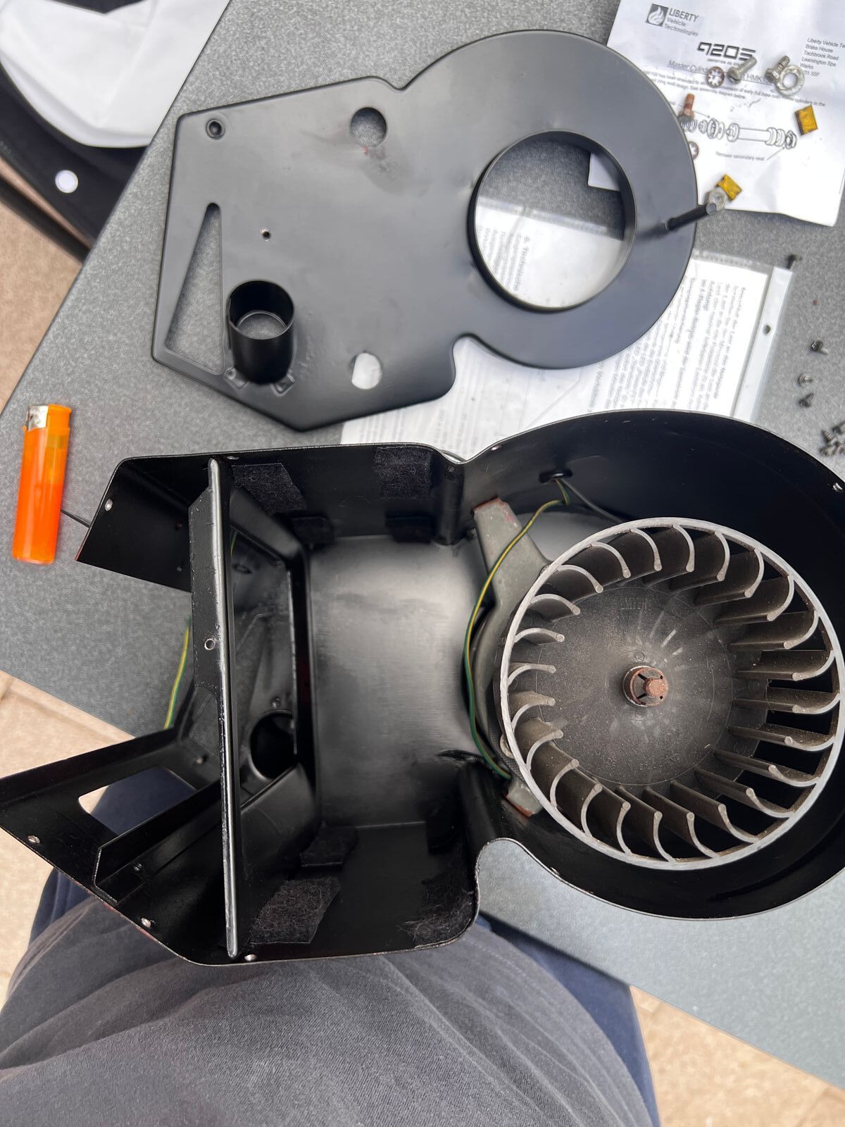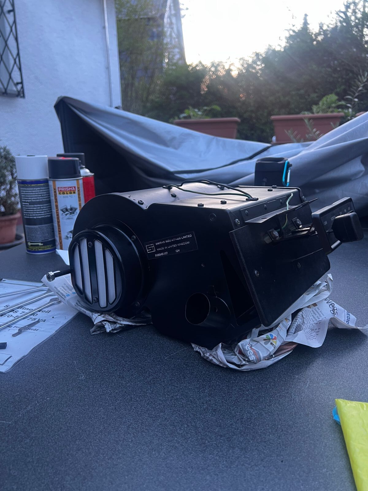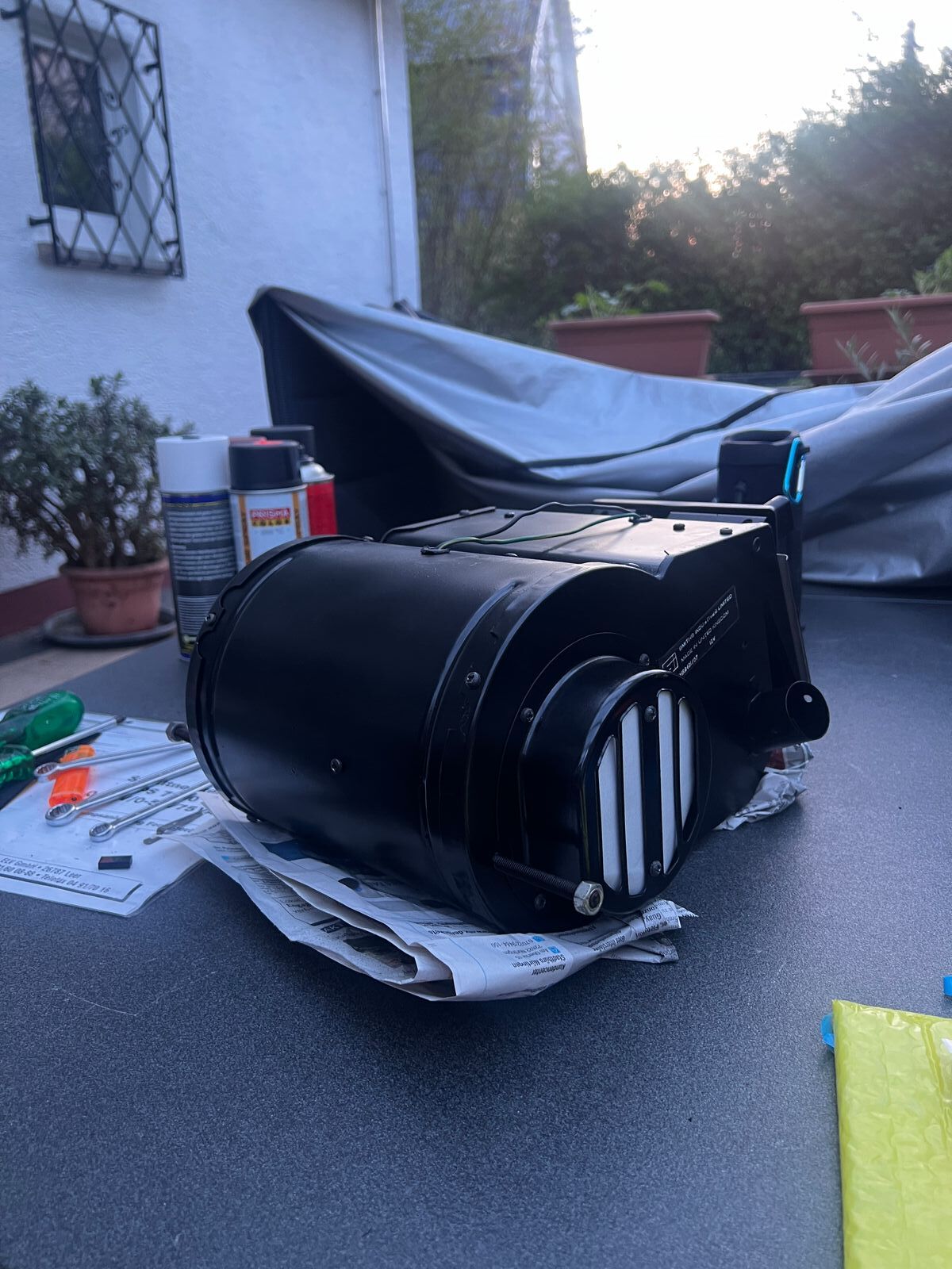 Einmal alles gebürstet, grundiert und lackiert.Dann noch den älteren, aber besser erhaltenen Wärmetauscher rein, mit etwas Klebefilz gepolstert und alles wieder zusammengebaut.