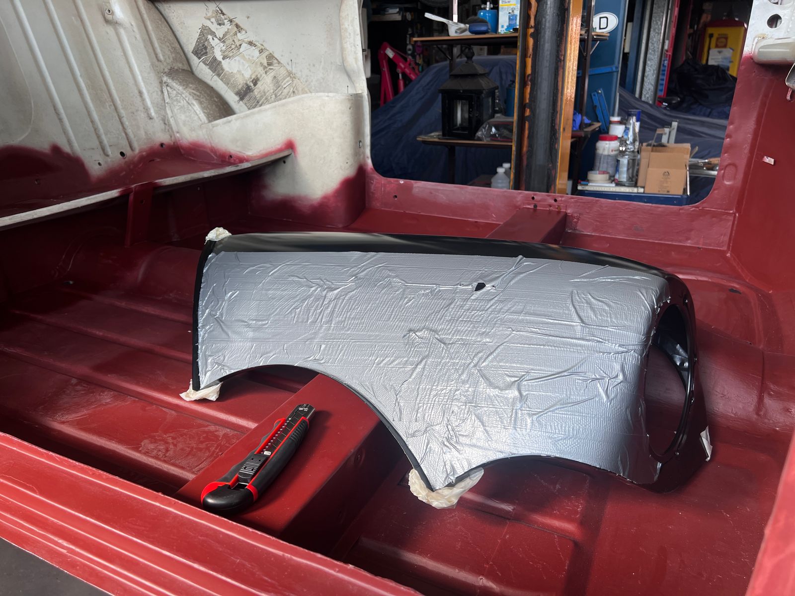 Wie auf einigen Bildern bereits zu sehen war, habe ich die letzten Wochen testweise die Türen montiert. Die Spaltmaße sind erstaunlich gut, da die Türen beide jedoch Arbeit an den Rahmen sowie neue Türhäute benötigen, mussten beide wieder runter.