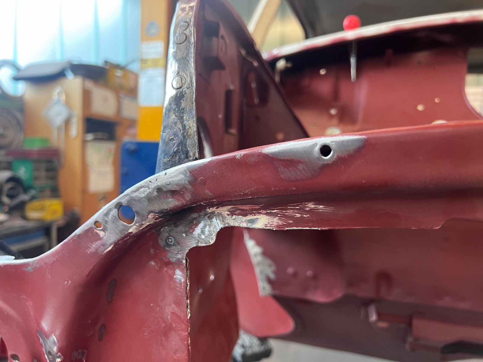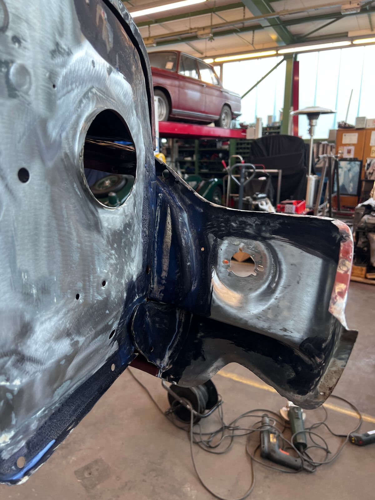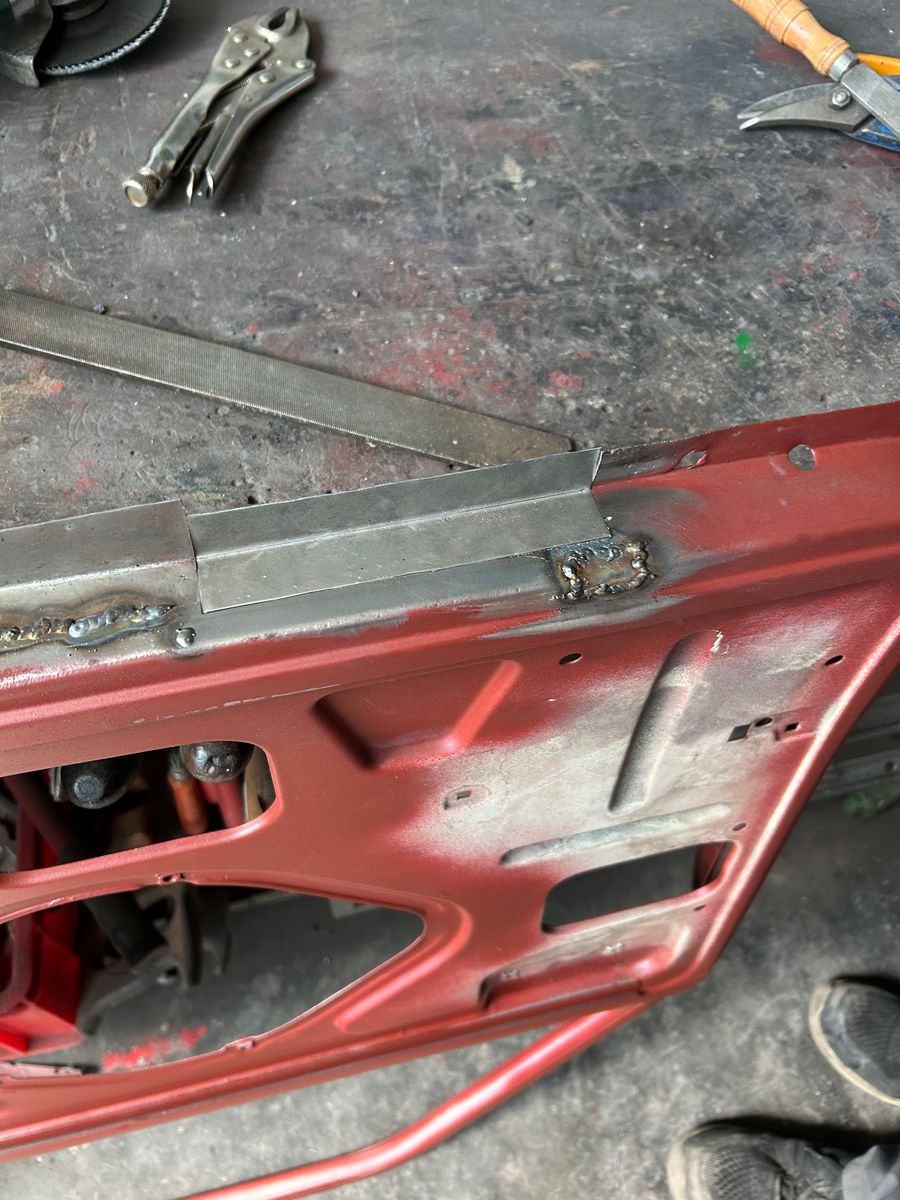 Dieses Wochenende arbeiteten mein Vater und ich parallel. Während ich mich der linken Tür widmete, ging es bei ihm darum die herausgetrennten Stellen der rechten Tür zu schweißen.
