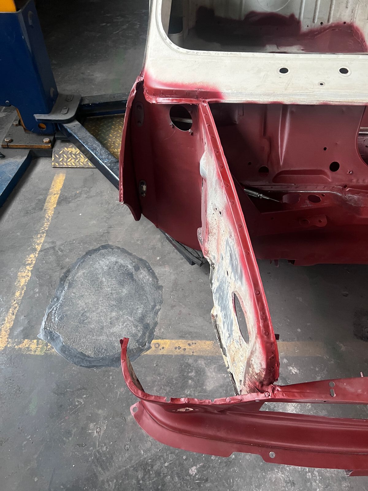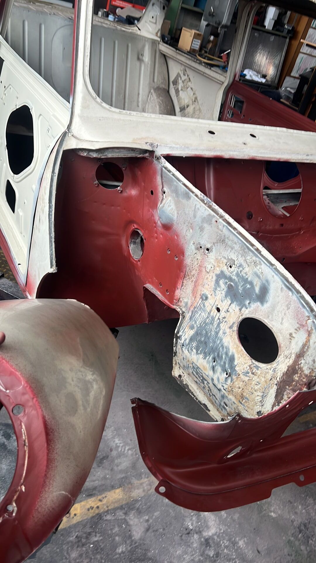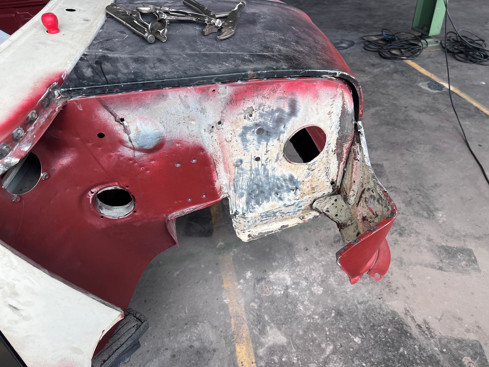 Dieses Wochenende arbeiteten mein Vater und ich parallel. Während ich mich der linken Tür widmete, ging es bei ihm darum die herausgetrennten Stellen der rechten Tür zu schweißen.