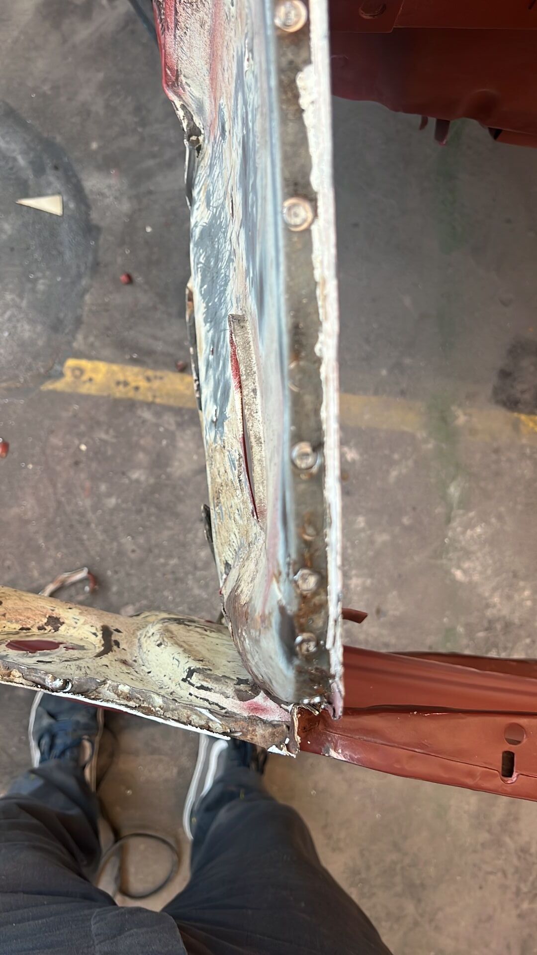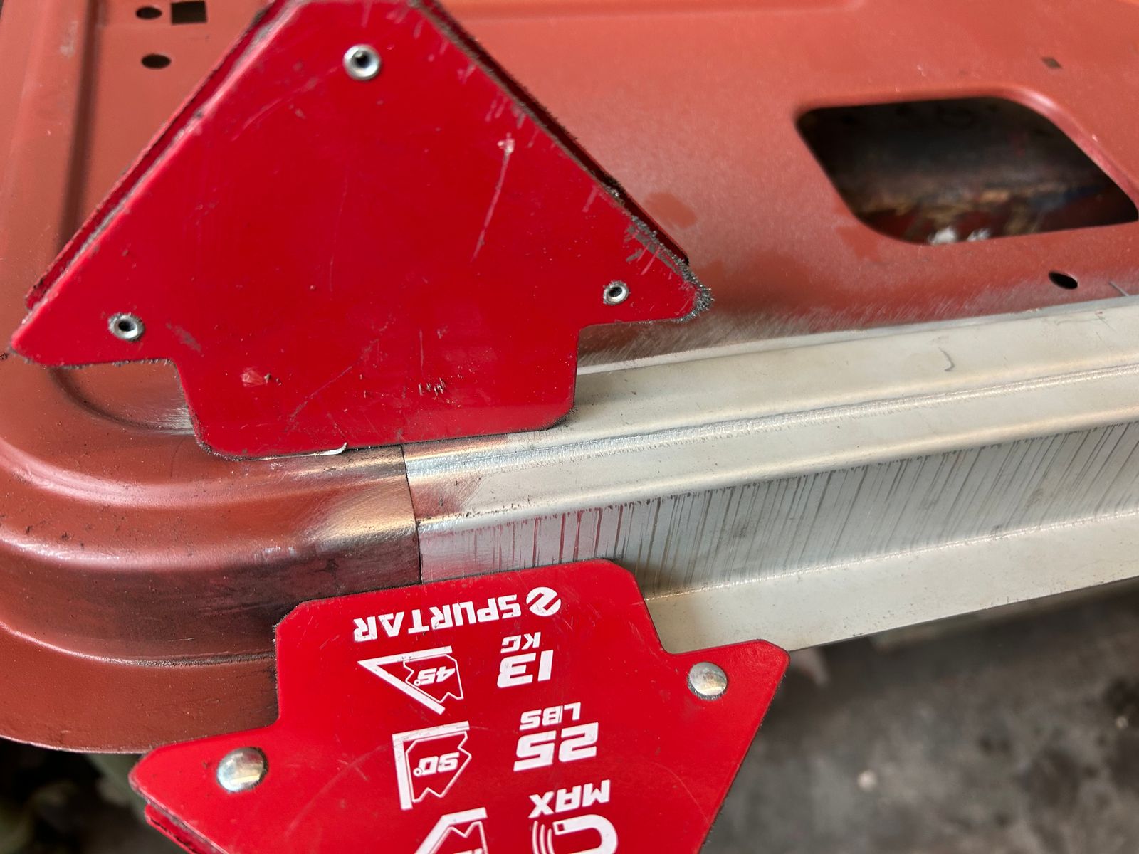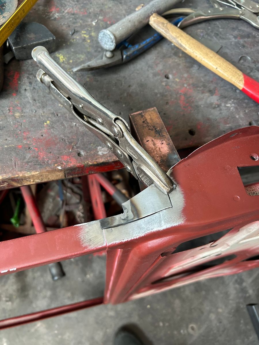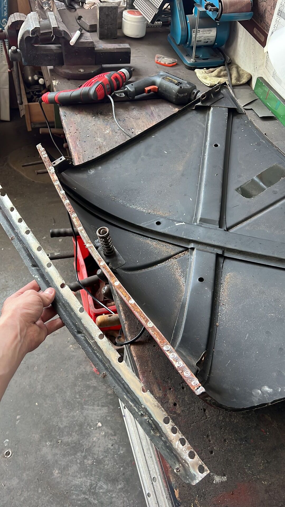 Dafür fertigte er neben zwei Kantblechen noch ein kleineres Stück für ein Rostloch an der Unterkante an, schweißte diese bündig ein, und schliff die Unterlippe wieder gerade.