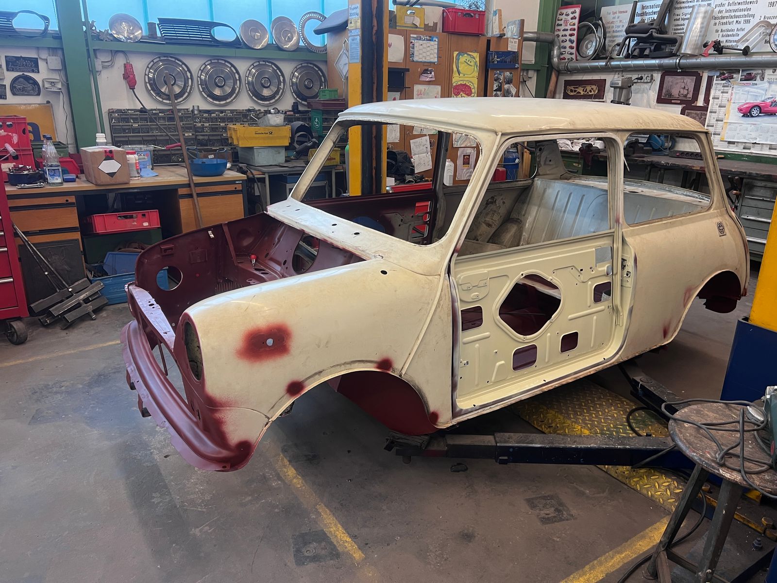 So. Gestern hab ich mal am Mini zusammengefasst, was jetzt an der Karosserie noch alles fehlt, bevor das erste Mal die Hilfsrahmen drunter können. Die Liste ist dann doch etwas länger geworden, wird aber von Tag zu Tag kürzer.