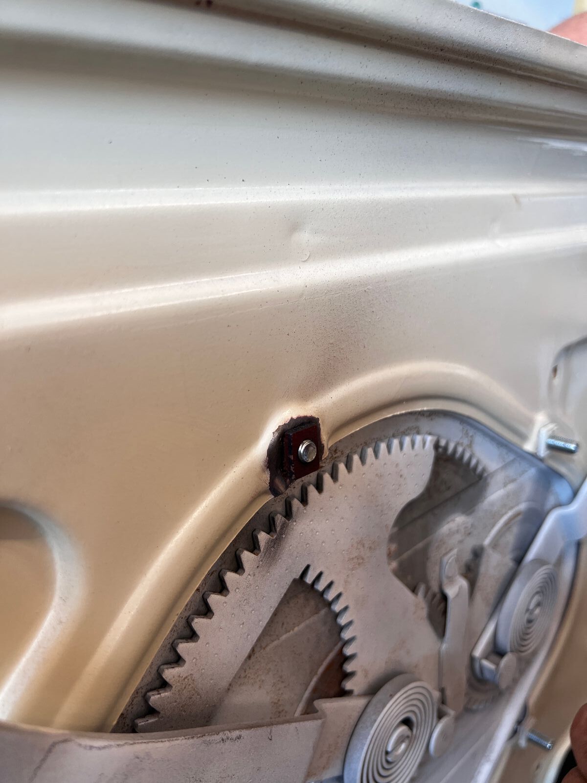 Zuvor mussten die Türen dafür allerdings noch vorbereitet werden. In den letzten Wochen wurden beide ja bereits geschweißt, grundiert und lackiert. Auf den Bildern fällt vielleicht auf, dass bei einer Tür die oberste Einschweißmutter des Fensterhebermechanismus rausgebrochen war. Glücklicherweise habe ich bereits letztes Jahr von Thomas Adamofsky von ProStreet zwei Türen im nicht ganz rettbaren Zustand geschenkt bekommen, also bot es sich perfekt an von einer der Türen das Spenderorgan zu entnehmen. Mit der Flex rausgetrennt, mit der Feile auf die Originalform zurück gebracht und eingeschweißt ist die Türe endlich wieder komplett!