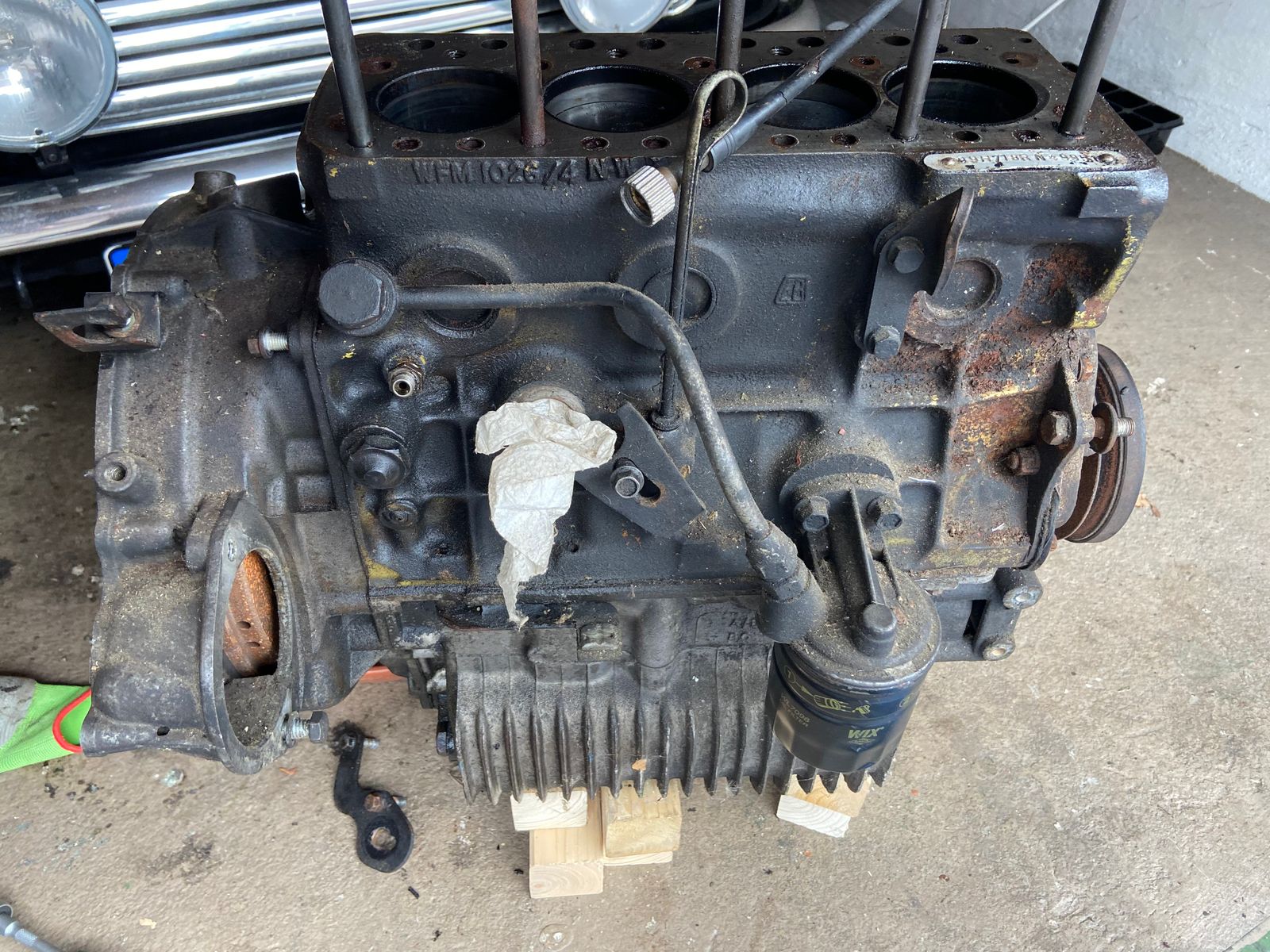 Den Motor eines Innocenti Cooper 1300, den ich mir gern als zukünftigen Meilenstein behalten möchte, falls ich das Projekt mal auf einen 1,3l umbauen möchte.