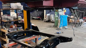 Und zuletzt noch den vorderen Rahmen auf eine Palette und Stück für Stück das Auto drauf. Die Abschlepphaken und die hinteren Befestigungen benötigten dank Alu-Lagerung wieder den Einsatz eines Dorns und viel Körpergewicht, aber immerhin hat man es jetzt geübt und weiß nachher beim finalen Aufbau etwas besser wie es geht!