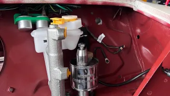 Bevor die großen schweren Teile (Die übrigens NICHT im Cooper S sondern zwecks Platzproblemen im Mondeo Kombi transportiert wurden) an den Mini konnten, mussten natürlich noch einige Vorbereitungen getroffen werden. Also die Lenksäule samt Pedalerie einmal rein und zum ersten Mal gab es auch die dazugehörigen Zylinder.