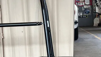 Auch im ausgebauten Zustand drückt sich die Dachstrebe selbstständig aus den Führungsschienen raus.