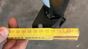Eine Stelle die ich als Problemstelle identifiziert habe ist die Befestigung des Vorderbaus an der B-Säule, hier ist eine Strebe nicht ganz mittig angeschweißt