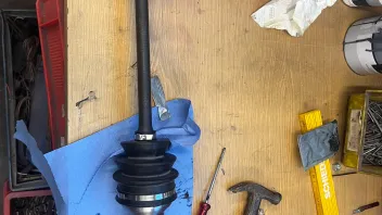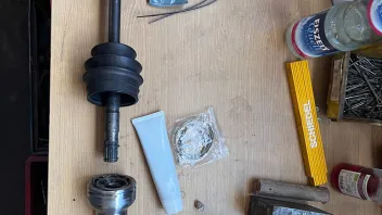 Angefangen mit den Antriebswellen. Die habe ich 2024 schon mit Hilfe einer Flex von ihren verrosteten Gleichlaufgelenken befreit, jetzt wird es Zeit, dass die Antriebswellen neu aufgebaut werden.