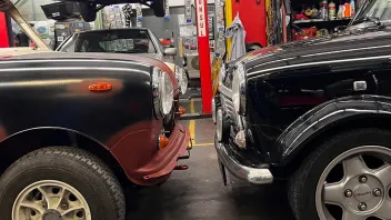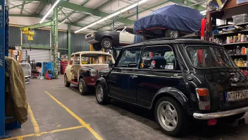 Hinten bleibt es bei den schmalen Trommeln, je nachdem wie die OZ Felgen am Ende sitzen wird vielleicht auf Breite Trommeln umgestiegen, vorn ist ne 7,5“ Cooper S Scheibenbremse drin, ich hätte aber (falls ich die eingetragen bekomme) auch noch eine 7,9“ 4-Kolben Anlage im Keller liegen😄